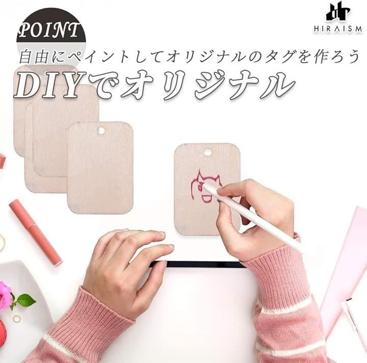 「DIYでオリジナルデザイン」絵具、色鉛筆、マジックなどで自由にペイントして、オリジナルのタグを作成可能。