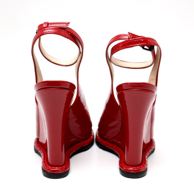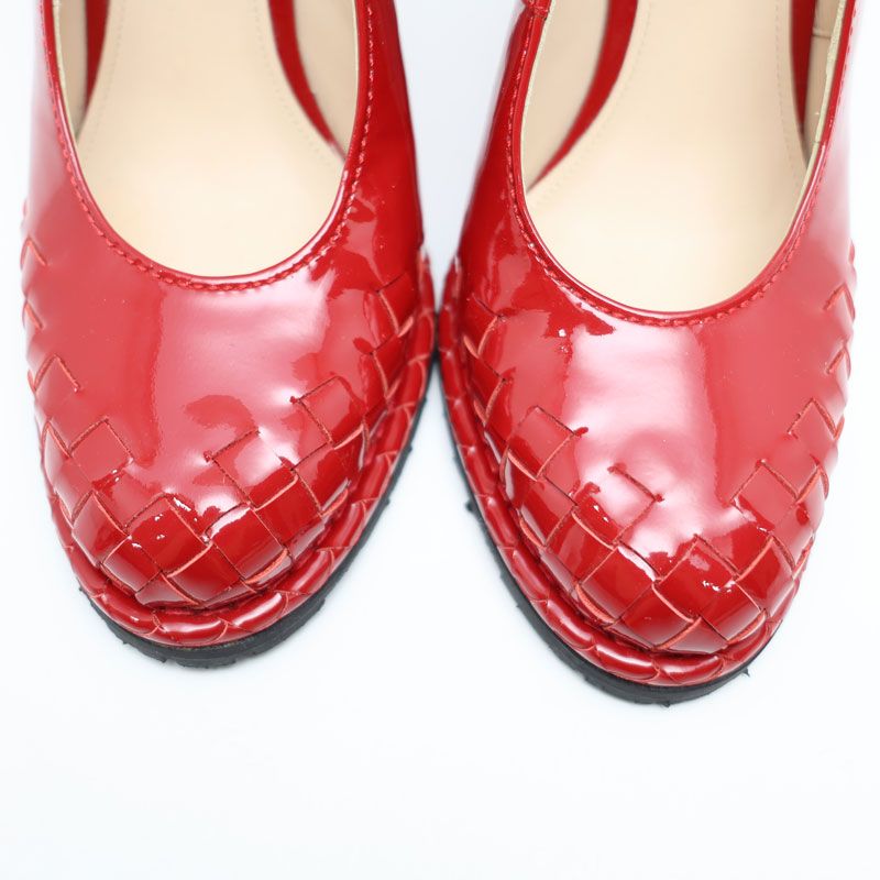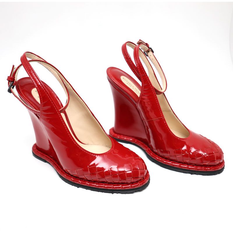 【商品説明】BOTTEGA VENETA(ボッテガヴェネタ) のウェッジソールパンプスです。艶のあるエナメル素材と、鮮やかなレッド系カラーが足元を華やかに見せてくれる一足。安定感のあるウェッジソールで歩きやすく、スタイルアップも叶います。