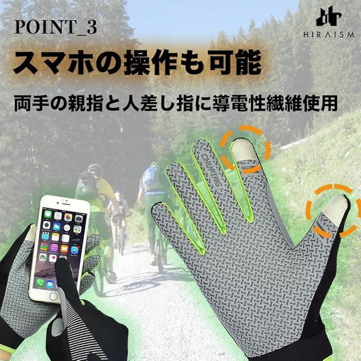 またグローブを着用したまま親指と人差し指の2本でスマートフォンやタッチパネルの操作が可能です。