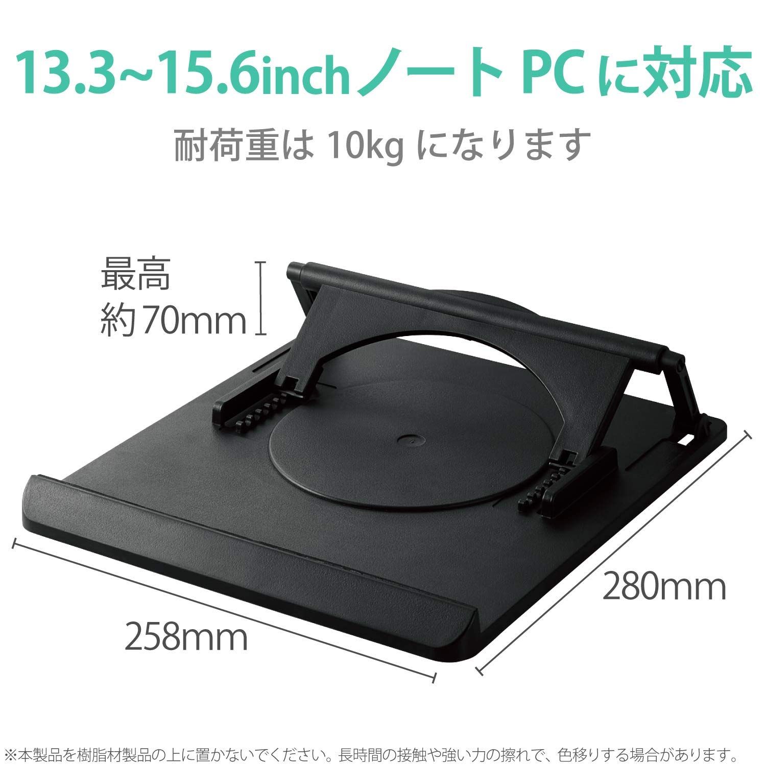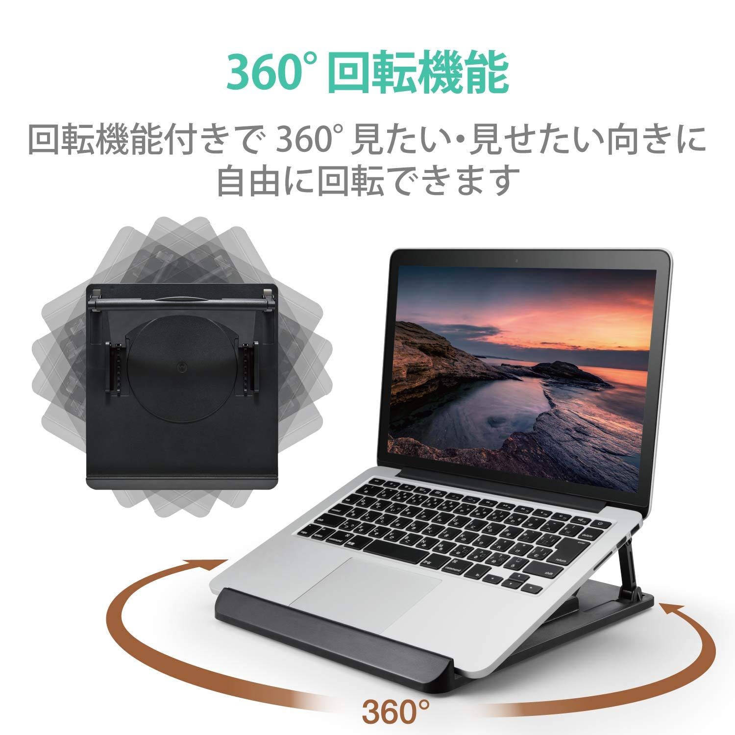 エレコム ノートPCスタンド 折りたたみ 回転式 折りたたみ時サイズ:幅258×奥行280×高さ30mm 耐荷重:10kg ブラック PCA-LTSR8BK