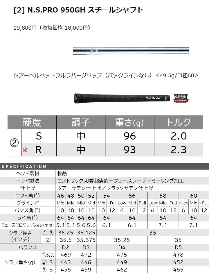 こちらの商品はNS PRO 950GH [S] スチールシャフト、日本仕様となります。