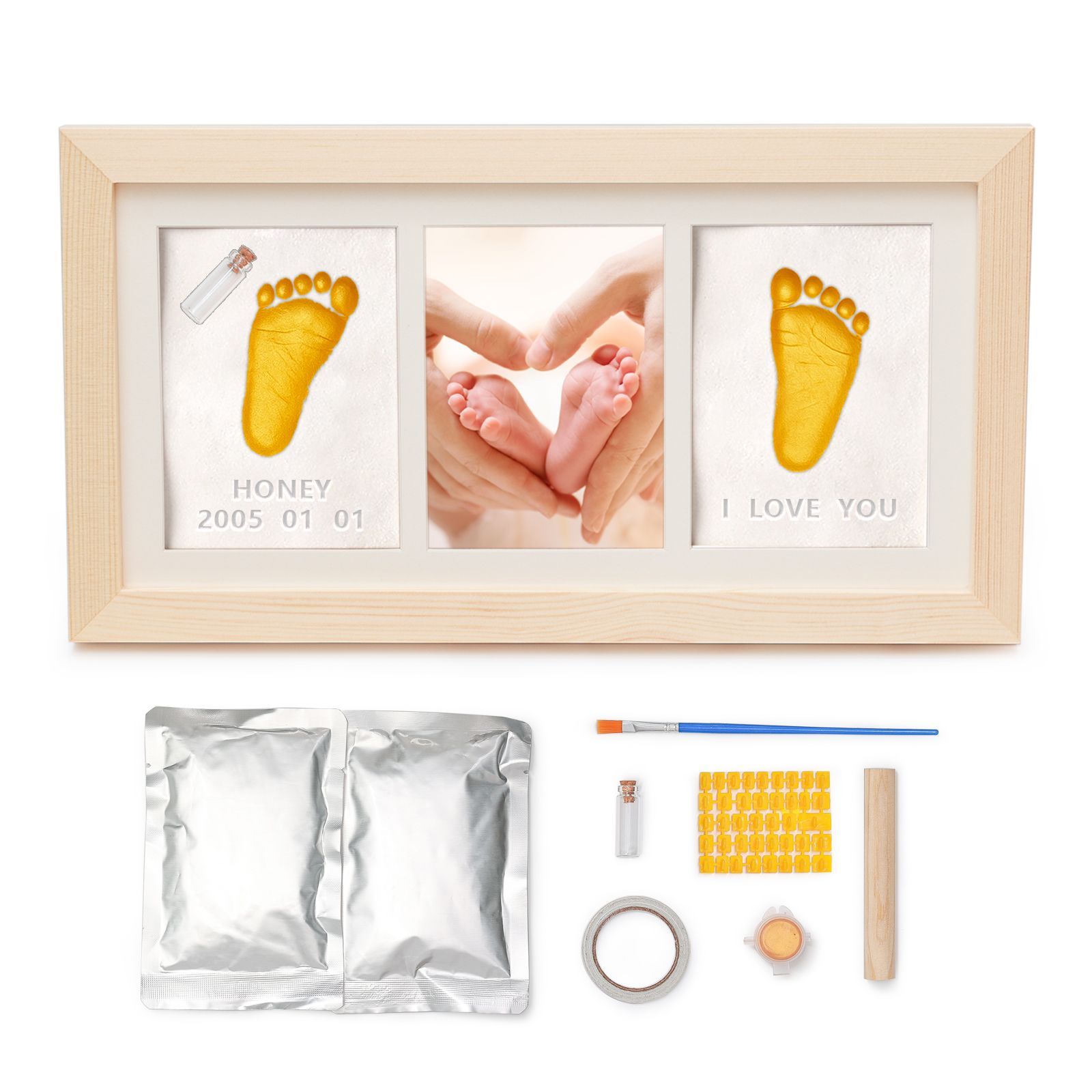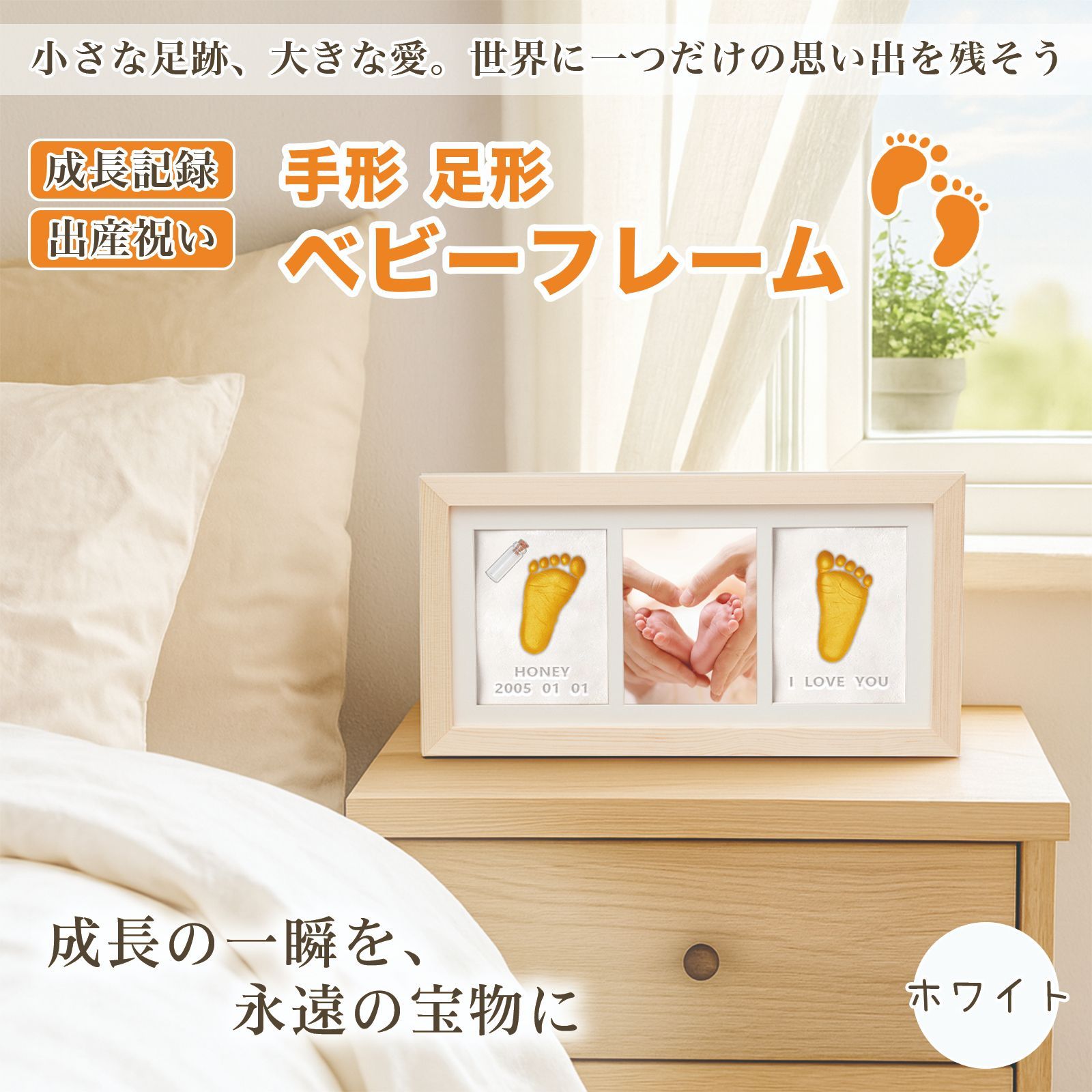 新品お得 ベビーフレーム 子供 手形 足形 粘土 フォトフレーム 写真立て 無毒 安全 赤ちゃん 新生児 乳歯ケース 出産祝い 内祝い メモリアル ボックス ベビー記念品 成長記録 誕生日 お母さん 猫 犬 肉球(ナチュラルフォトフレーム、ホワイト粘土)