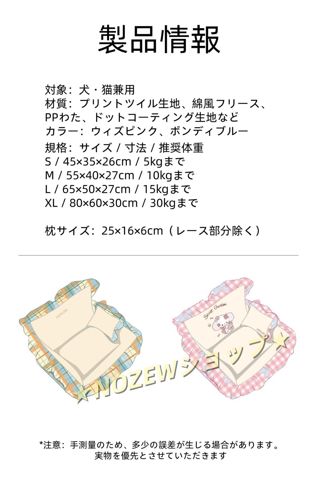 規格:サイズ / 寸法 / 推奨体重