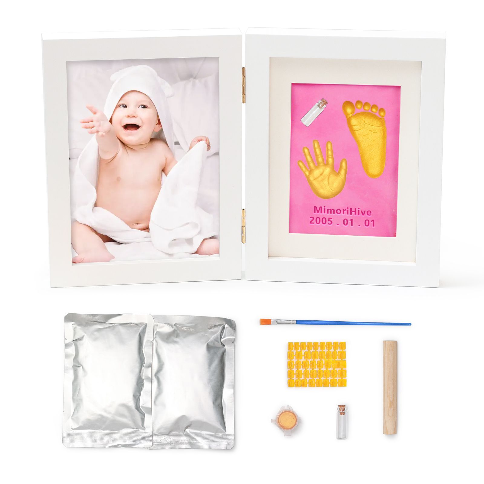 新品お得 ベビーフレーム 子供 手形 足形 粘土 フォトフレーム 写真立て 無毒 安全 赤ちゃん 新生児 出産祝い 内祝い メモリアル ボックス ベビー記念品 成長記録 誕生日 お母さん 猫 犬 肉球折り畳み式(ホワイトフォトフレーム、ピンク粘土)