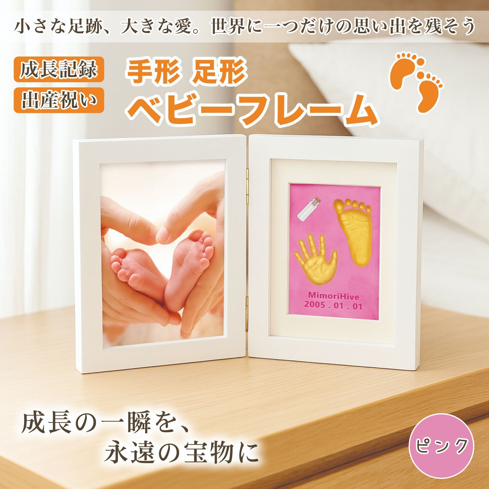 このベビー用メモリアルフォトフレームは、赤ちゃんとの大切な思い出(写真・手形・足形など)を形として残せる特別な記念品です。