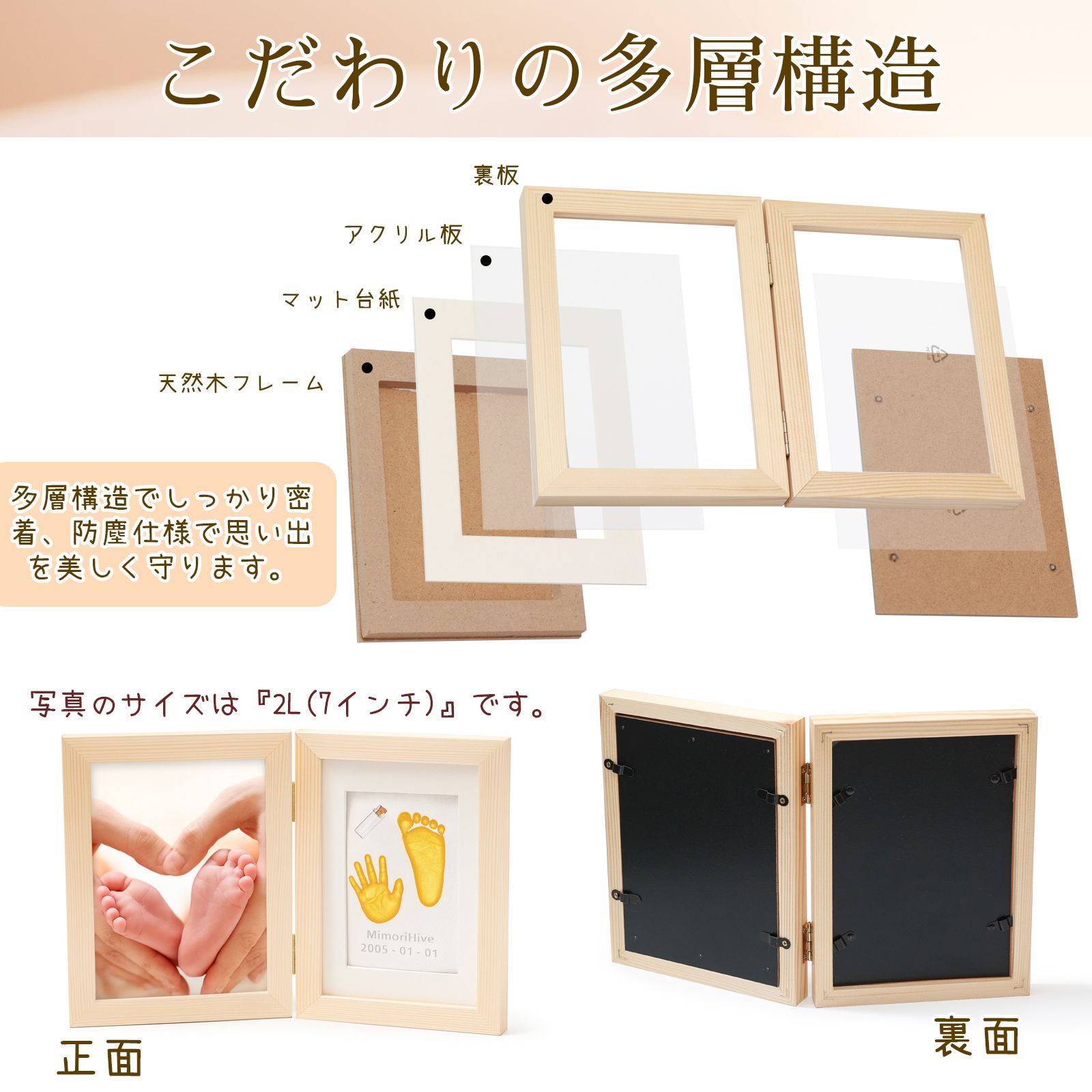お気に入りの写真と、粘土で作った手形・足形の両方を飾ることができ、成長の記録や大切な瞬間を永遠に残せます。