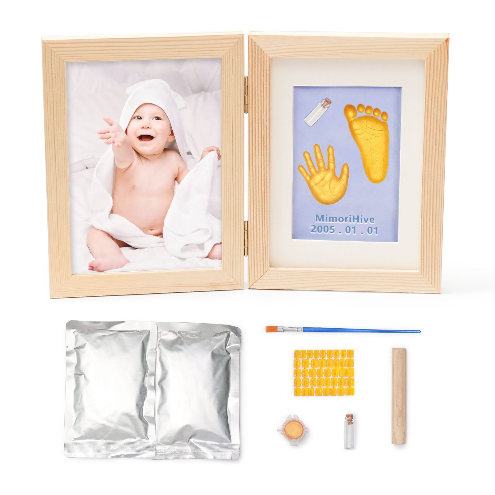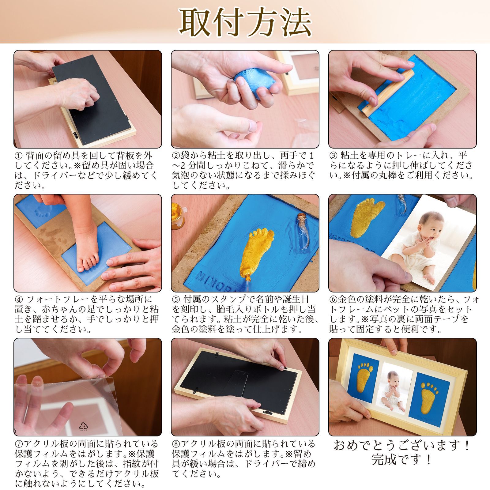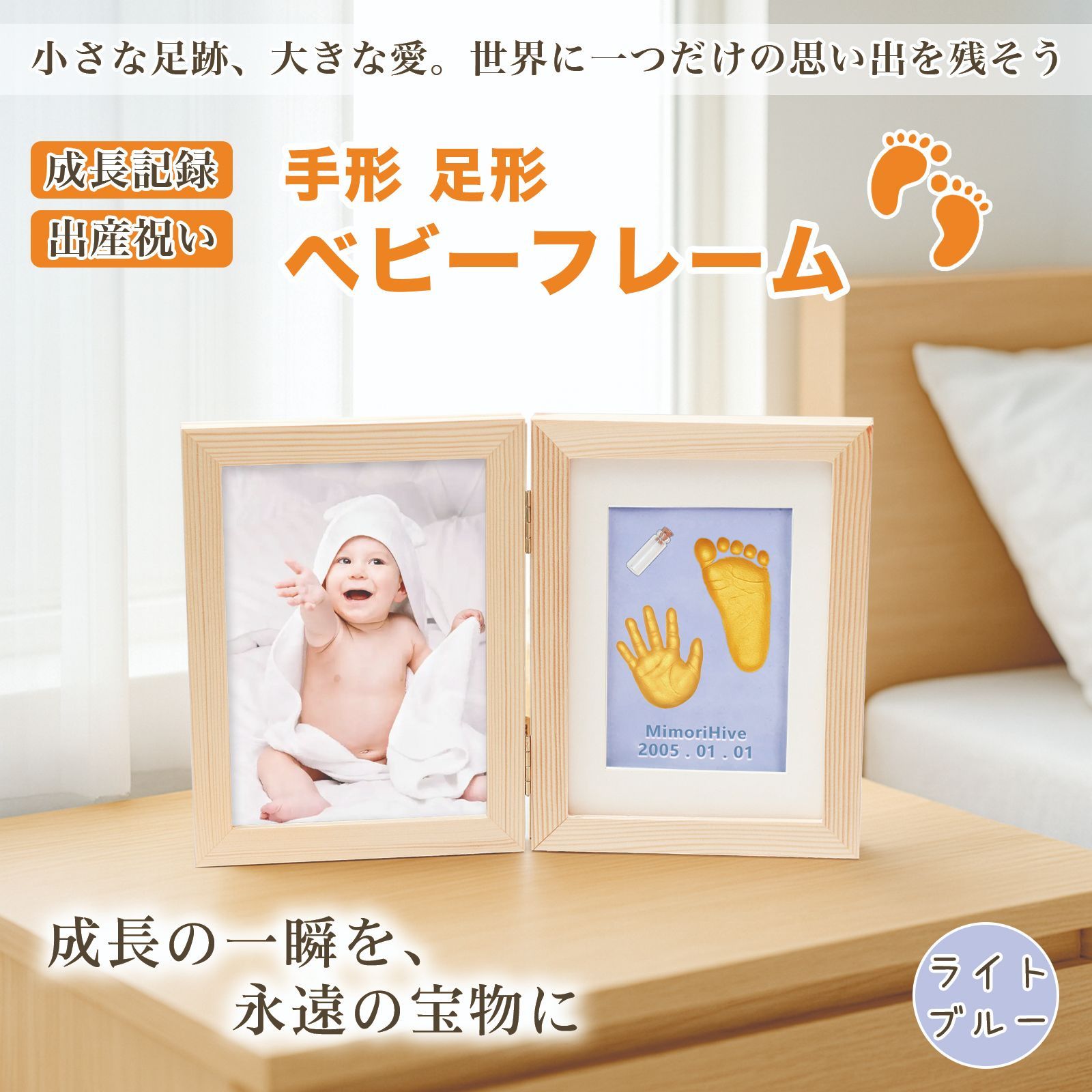 新品お得 ベビーフレーム 子供 手形 足形 粘土 フォトフレーム 写真立て 無毒 安全 赤ちゃん 新生児 出産祝い 内祝い メモリアル ボックス ベビー記念品 成長記録 誕生日 お母さん 猫 犬 肉球折り畳み式(ナチュラルフォトフレーム、ライトブルー粘土)