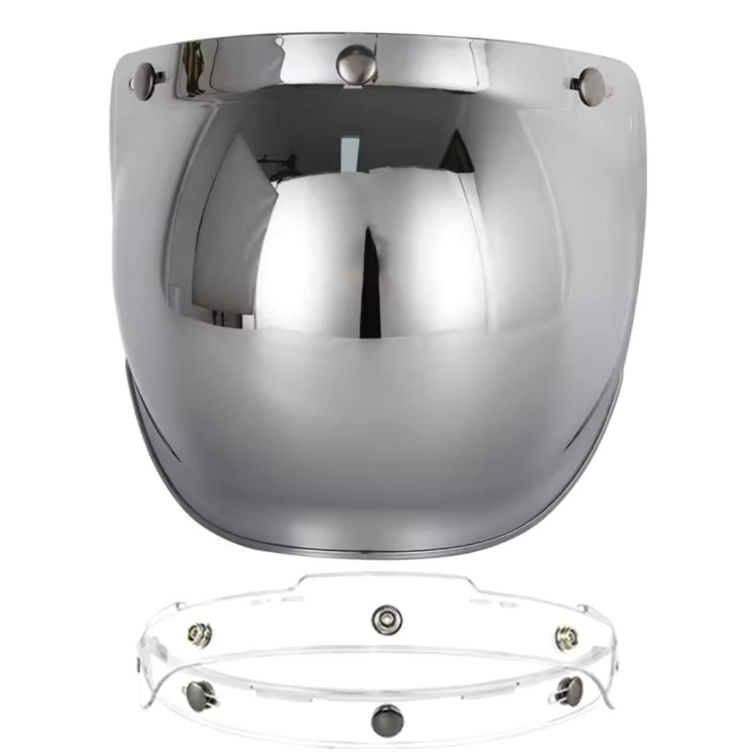 ジェットヘルメット用 バブルシールド 銀 フリップアップベース付き 汎用 3点スナップ ミラーシールド