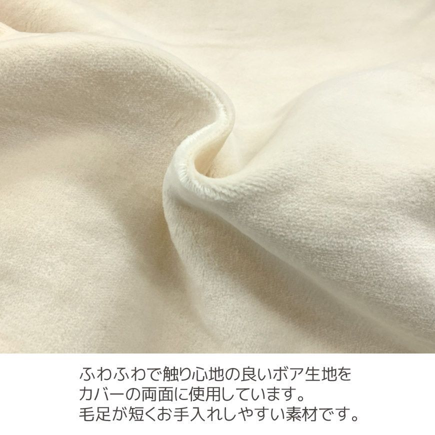 表生地はふわふわあったかなボア素材。お手入れしやすいよう毛足の短いものを使用しました。