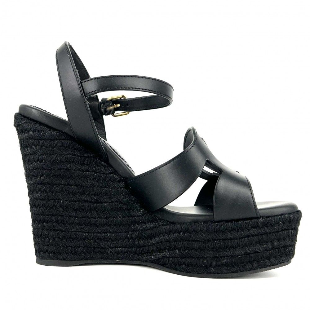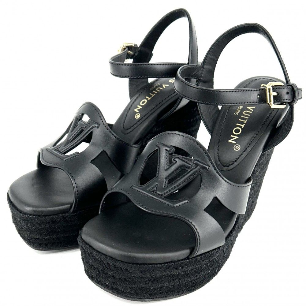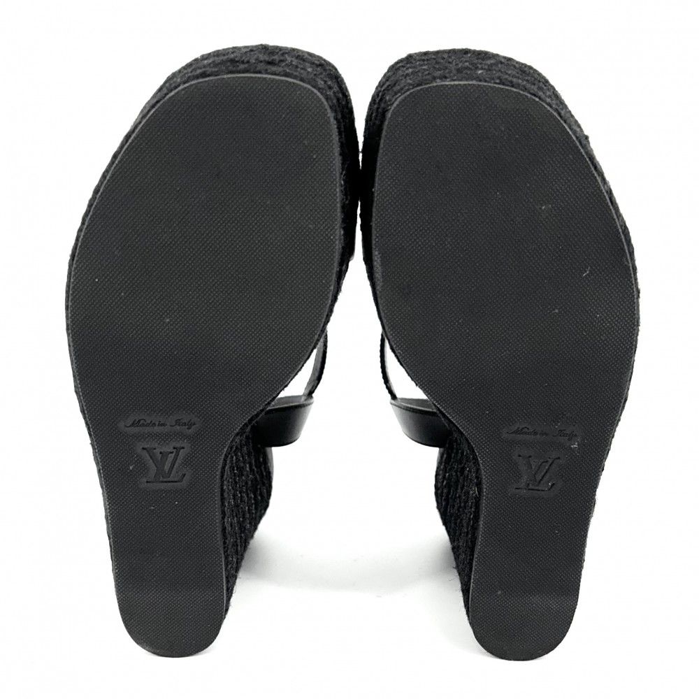 【商品名】LOUIS VUITTON ルイヴィトン サンダル 37サイズ 約24cm ブラック 黒 ウェッジソール 靴 1AD5E0 ノワール ゴールド レディース【中古品】