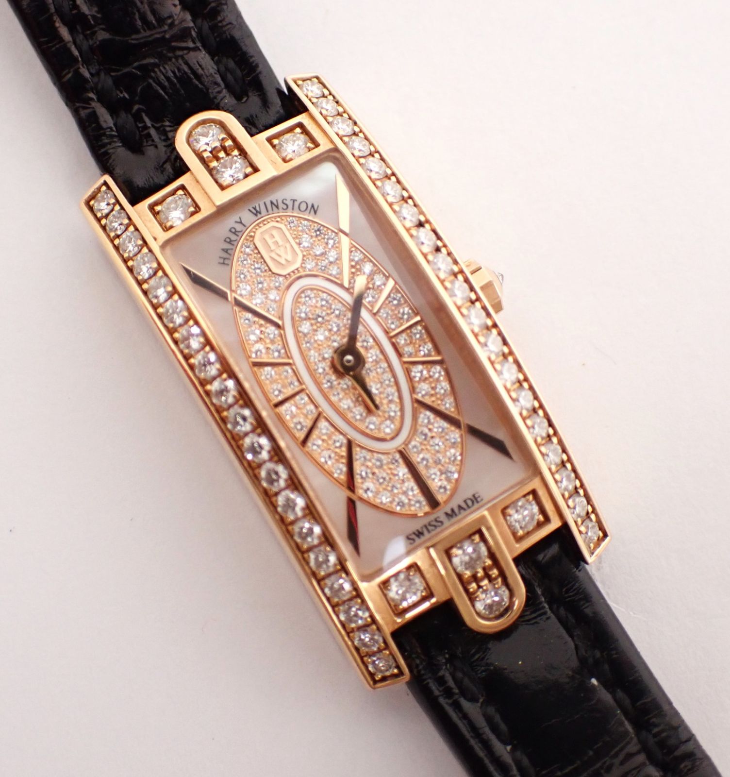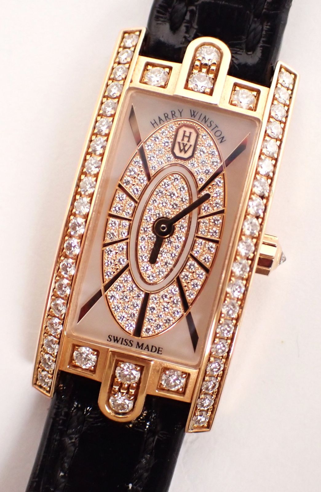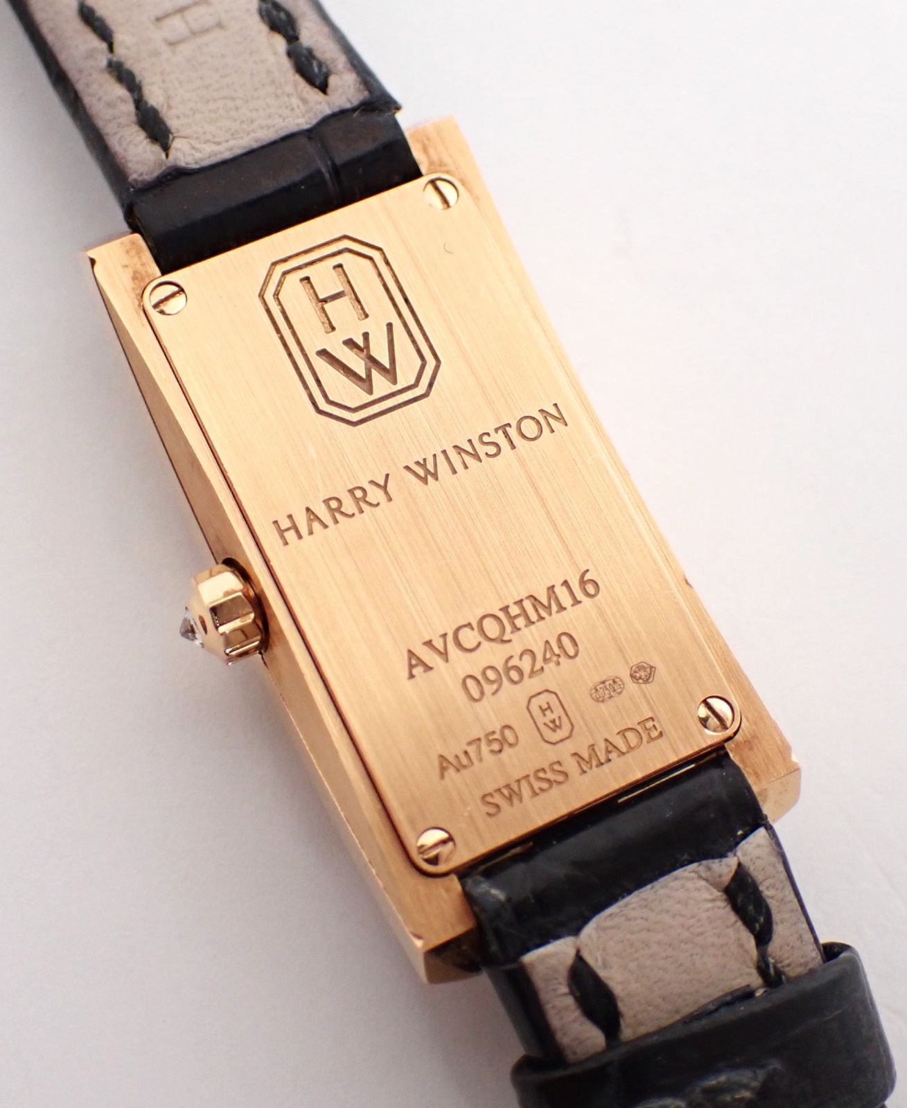 説明:HARRY WINSTON(ハリーウィンストン) アヴェニューCミニ エリプティック AVCQHM16RR045 PG/革 QZ です。