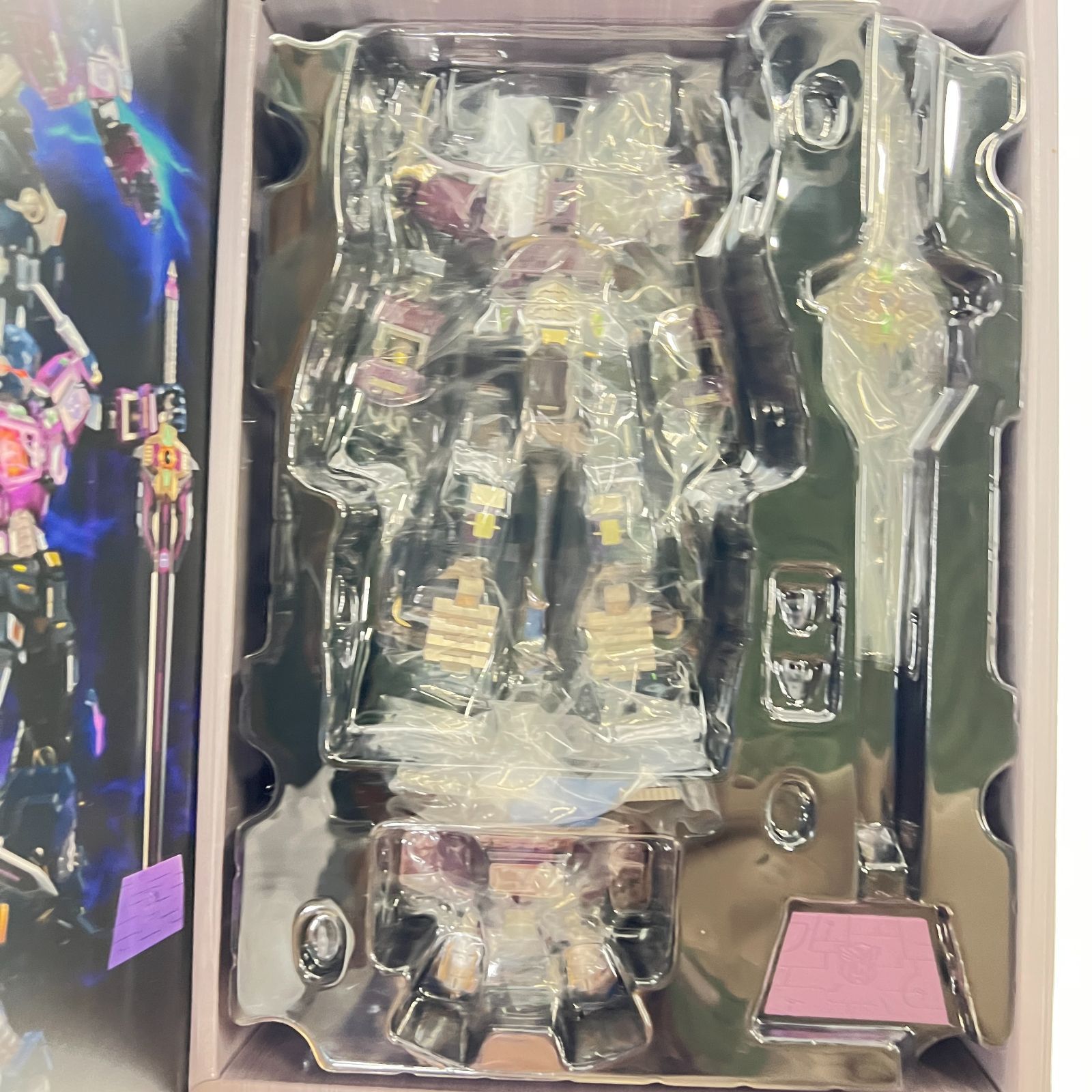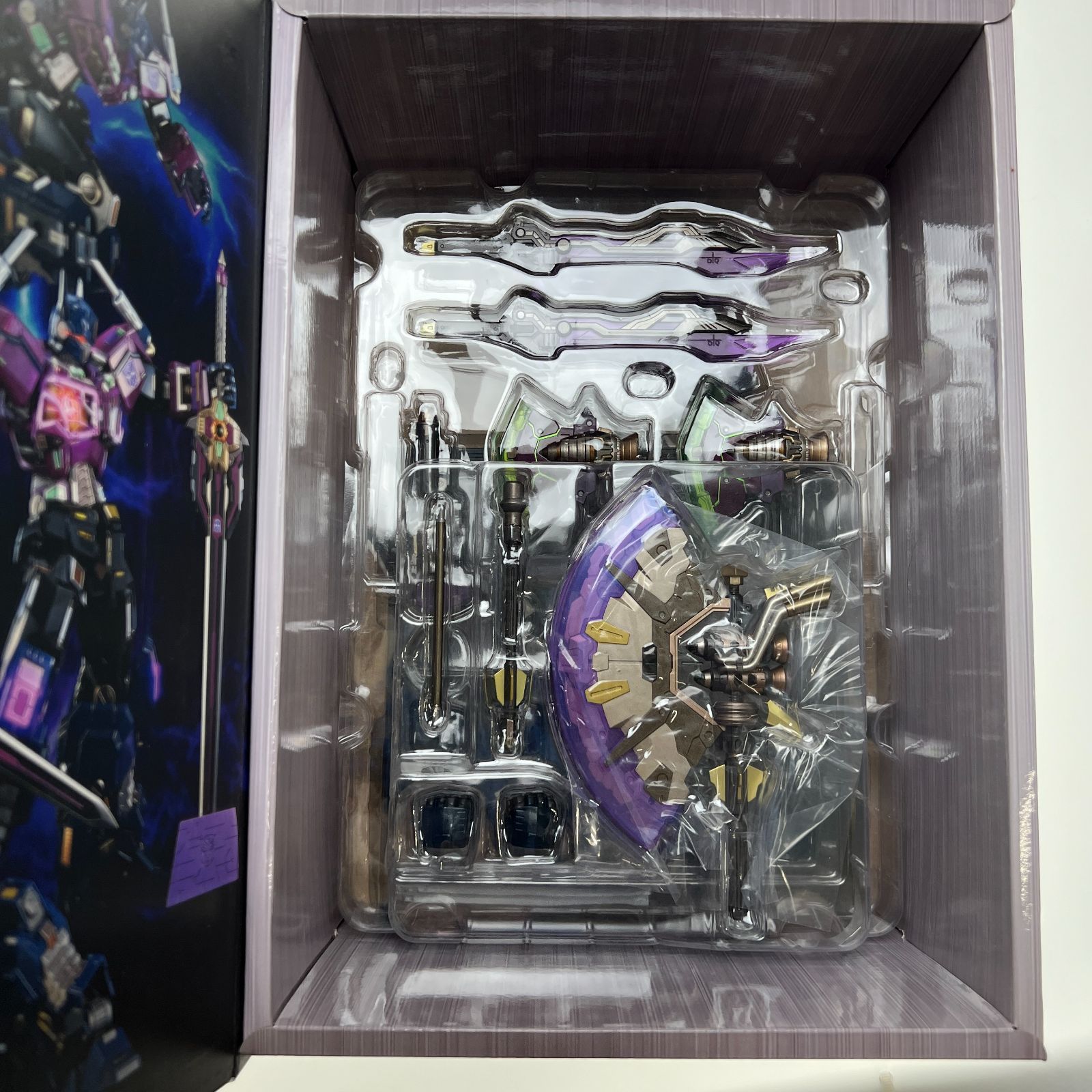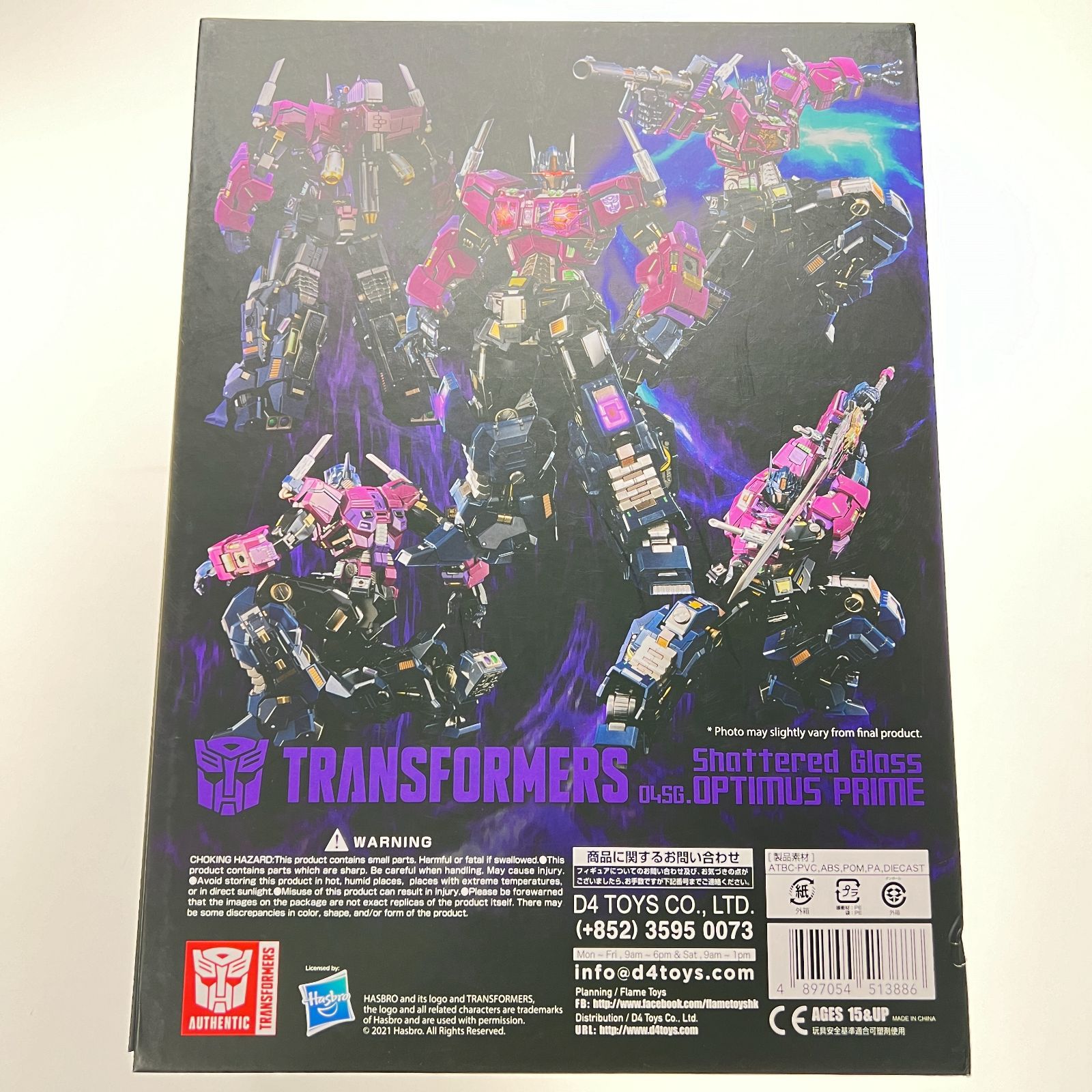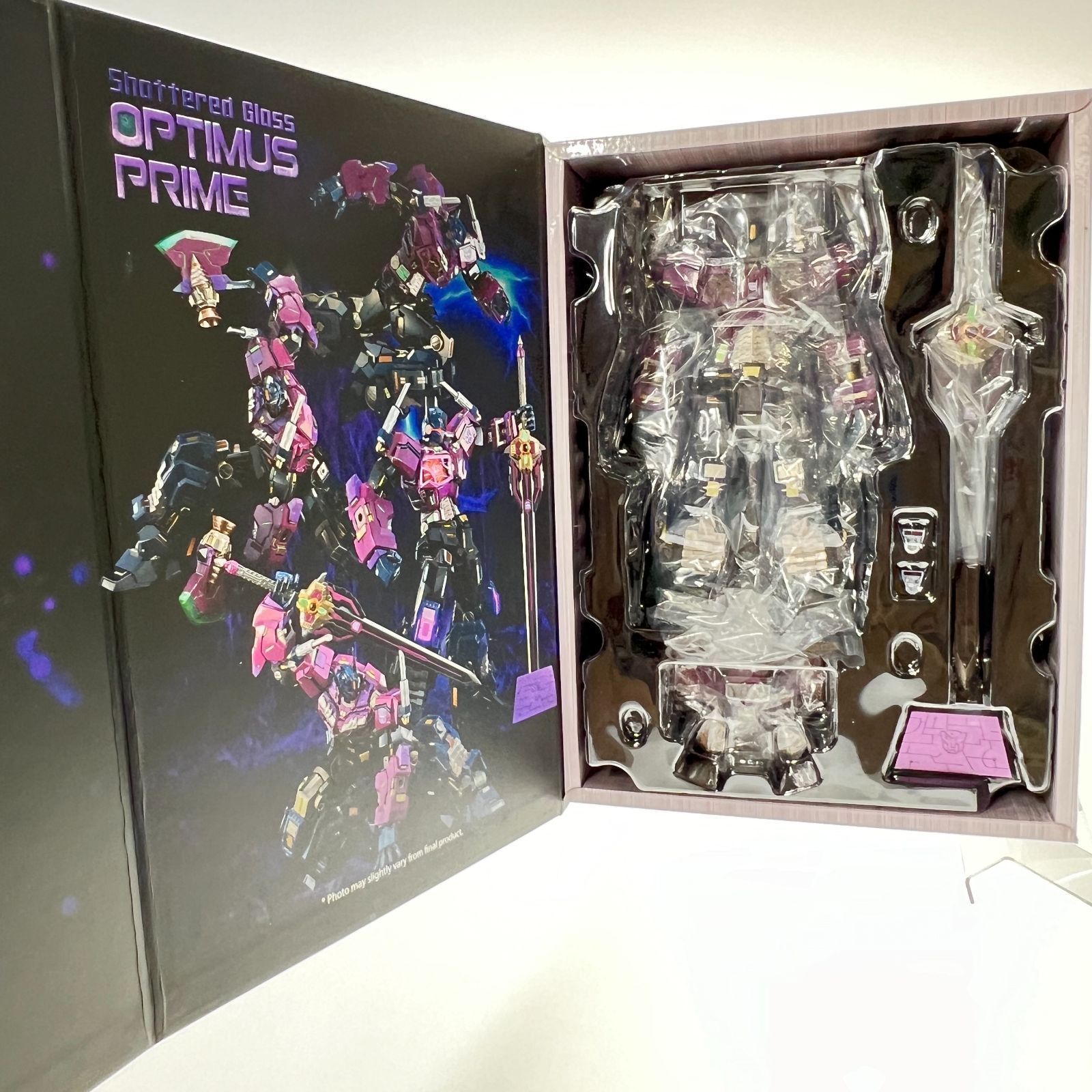 FLAME TOYS 鉄機巧 シャッタードグラス オプティマスプライムは、2021年11月にリリースされた、ダイキャストパーツを使用したアクションフィギュアです。通常版のオプティマスプライムとは異なり、パープルを基調とした特徴的なカラーリングが施されています。