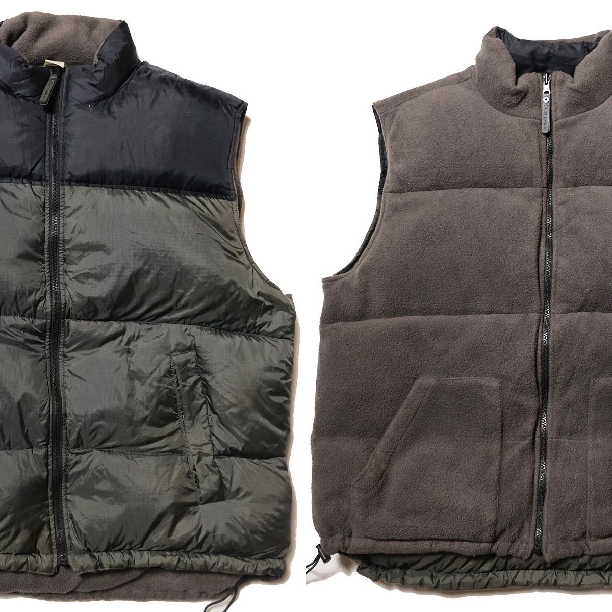 リップストップナイロンとフリースのリバーシブルベスト。