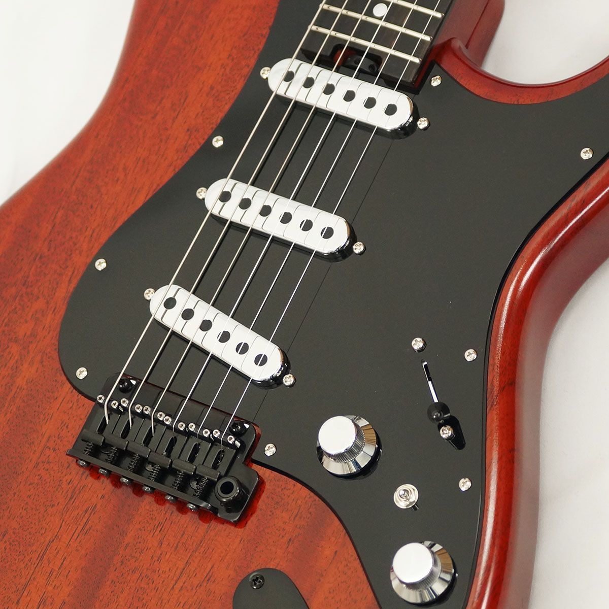 Red Special の外観面&機能面における特徴的なスペックを、トラディショナルなSTスタイルに落とし込んだことで、遊び心を備えた独創的な外観とスムースな演奏性を両立させた意欲作。
