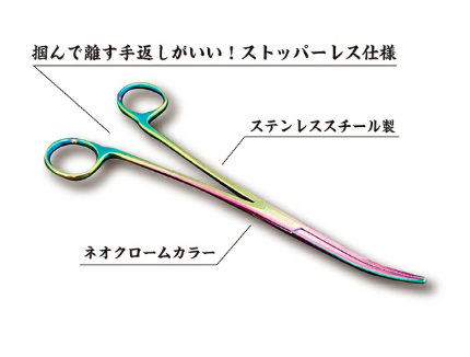●絶妙な先端の角度が墨袋の奥までスルリと入り込み約65mmのロングなハサミ部で墨袋をしっかりキャッチ! 本体はハードに使っても錆びにくいステンレススチール製となっており、高級感のあるネオクロームカラーも特徴です。