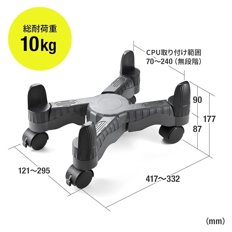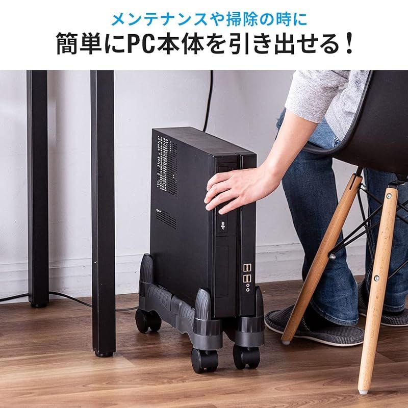 商品名:サンワダイレクト CPUスタンド デスクトップ用 キャスター付 ほこり対策 無段階調節 100-CPU001