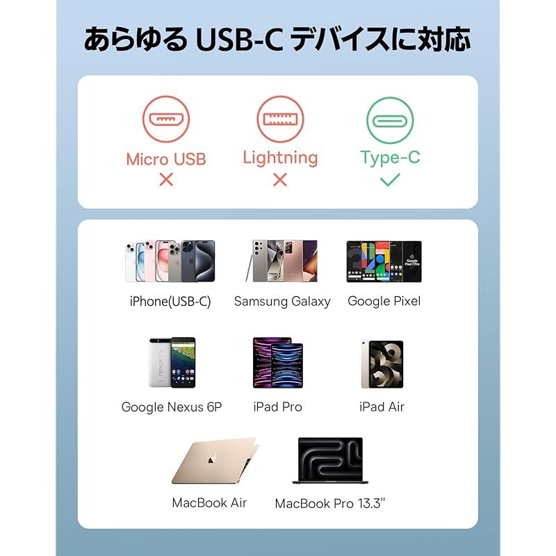 【あらゆるUSB-C機器に充電可能】あらゆるUSB-Cデバイスを充電できる、多彩な互換性を備えています。旅行時にも頼りになる、コンパクトな巻き取り式USB-Cケーブル。(充電と480Mbpsのデータ転送に対応しており、ビデオ転送には対応していません。)