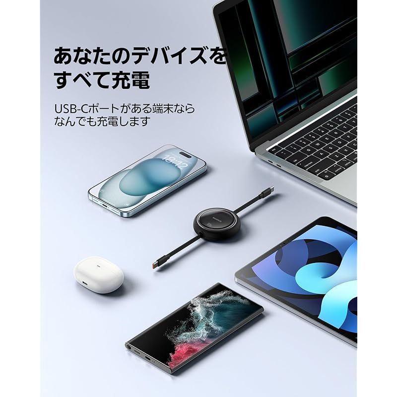 商品名:「VGP 2025受賞」Baseus 充電ケーブル 巻き取り式 USB-C ケーブル 急速充電 100W 5A PD対応 絡まない コンパクト リール式 iPhone16/15 Galaxy iPad Pro MacBook Pro 対応 Free2Draw