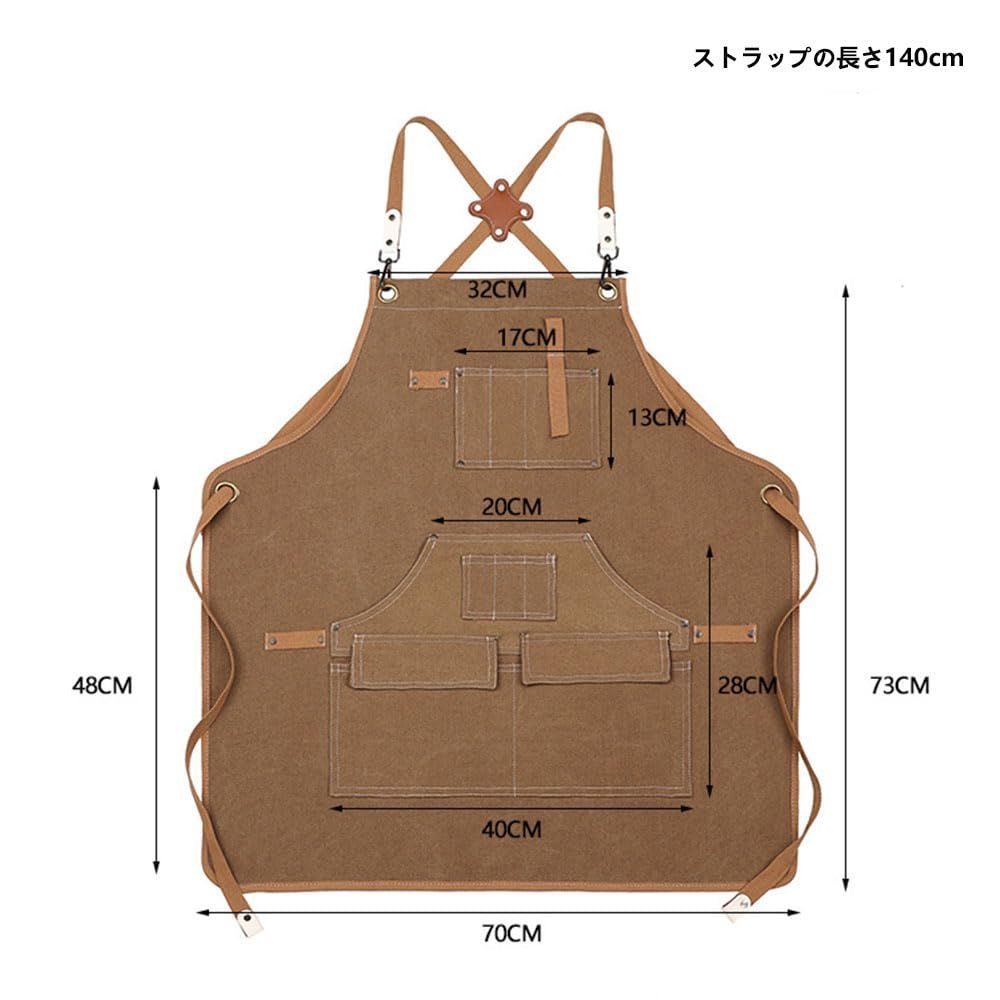 [EOMECUIGAO] エプロン 前掛け カフェ ガーデニングエプロン 大きいサイズ ポケット入り ユニセックス エプロン おしゃれ