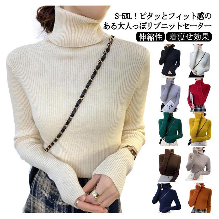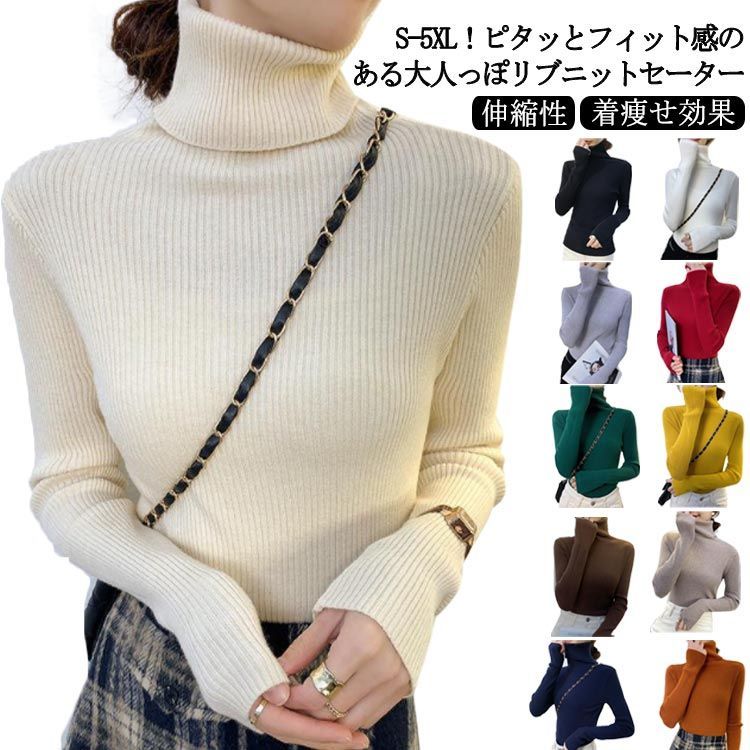 S-5XL!ピタッとフィット感のある大人っぽリブニットセーター。タイトなシルエットで女性らしい印象に仕上がります。