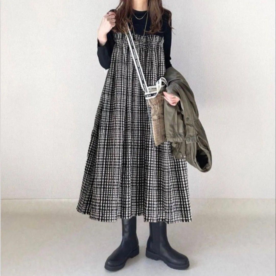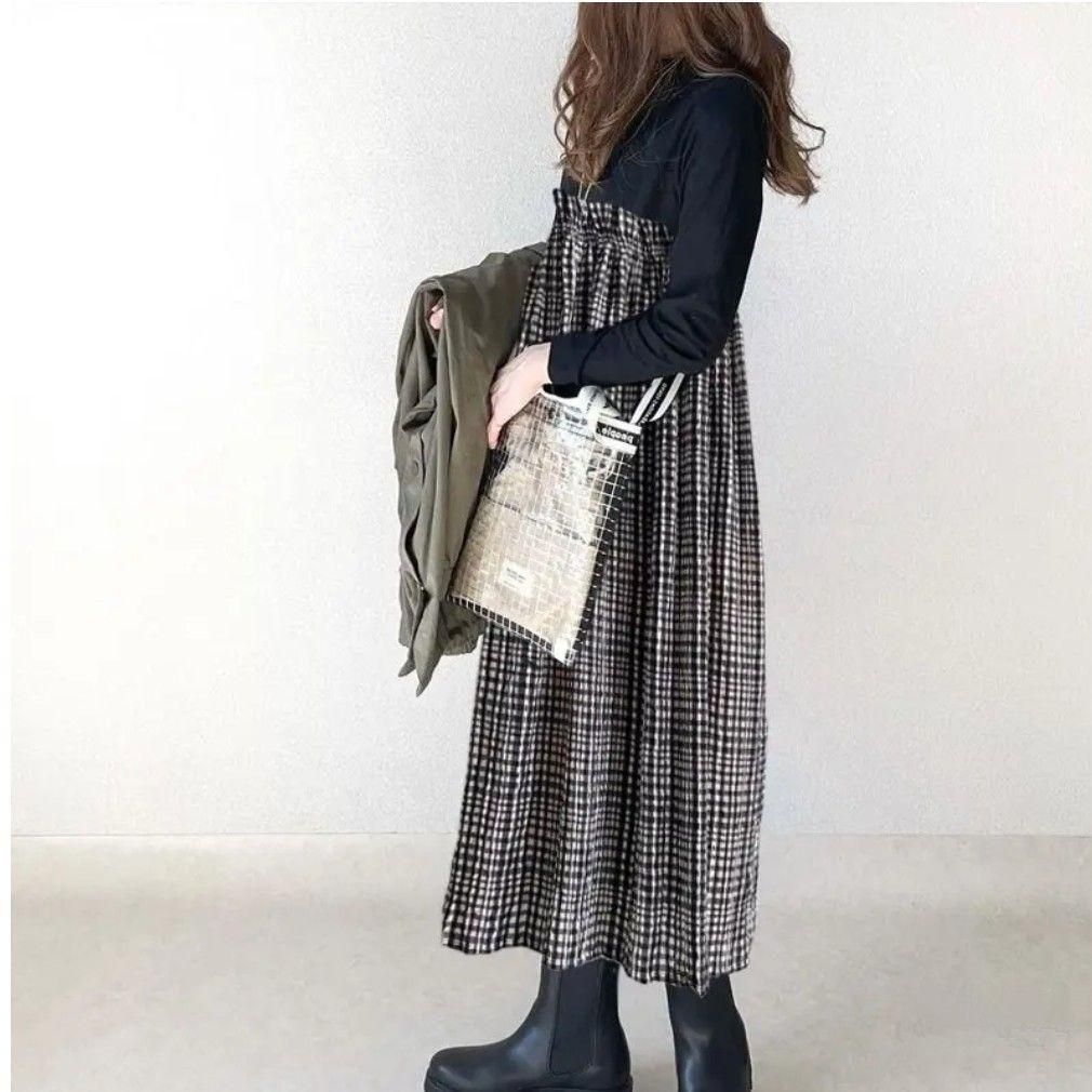 ナチュラル&カジュアルなチェック柄ロングワンピース