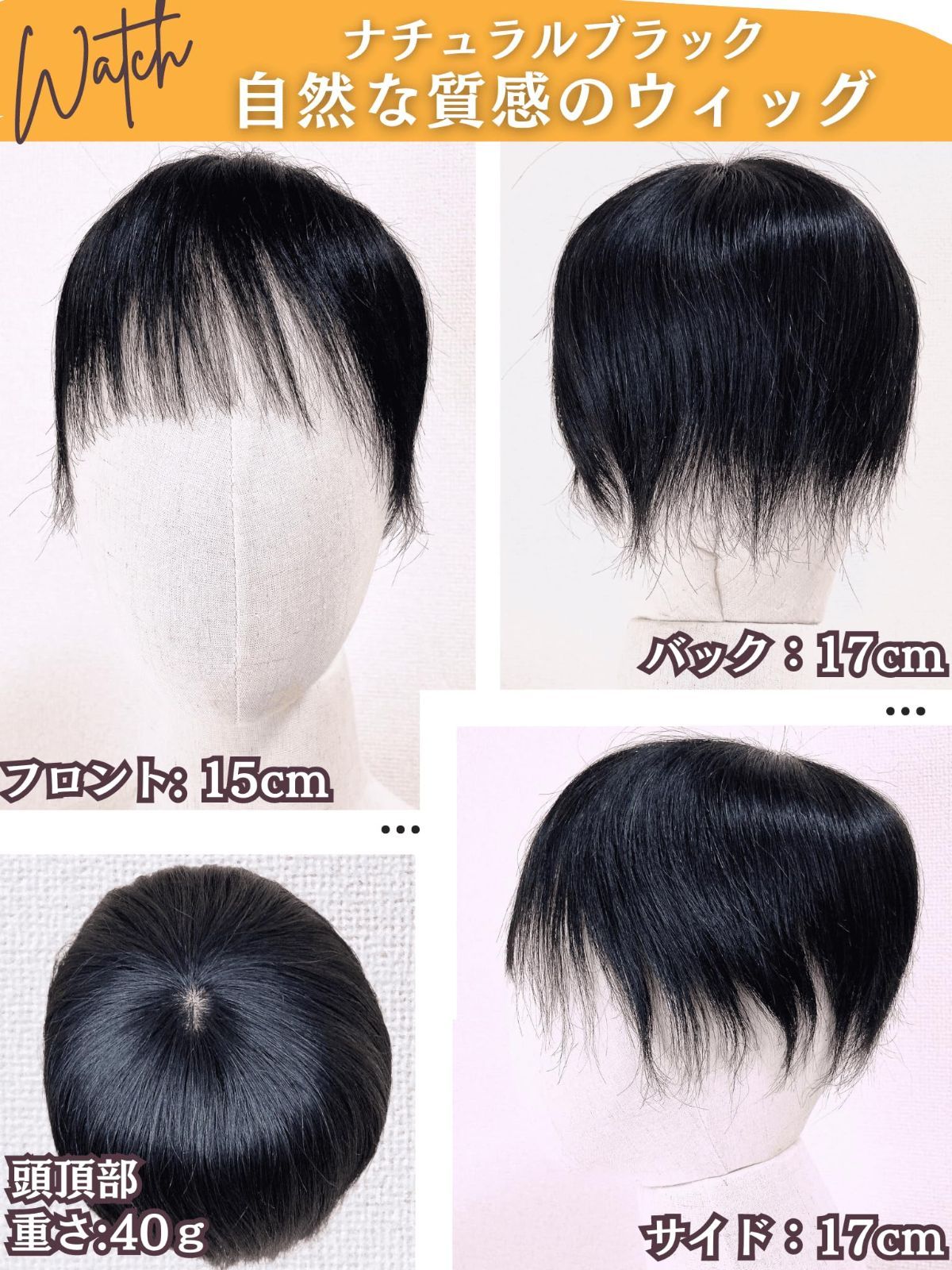 ?【商品詳細】③サイズ:ストレートショート (フロント15cm、バック17cm、サイド17cm) ベースサイズ:13×13cm ④重さ:約40g ⑤カラー:ナチュラルブラック(黒色) ⑥対象: メンズ 男性 レディース 女性 医療用 ⑦髪質:少し細めでストレート