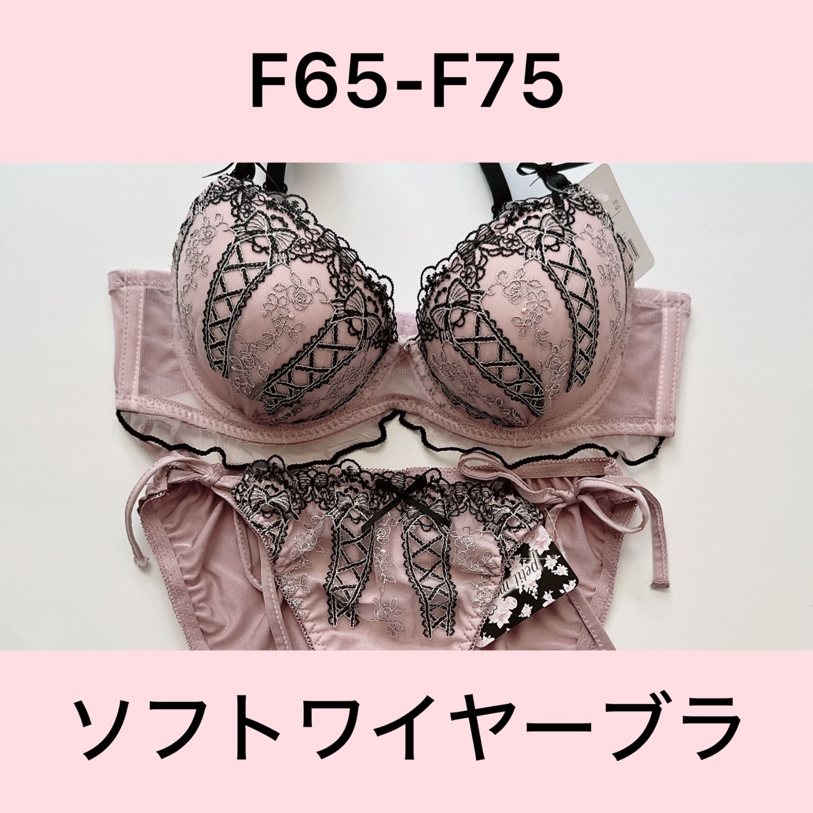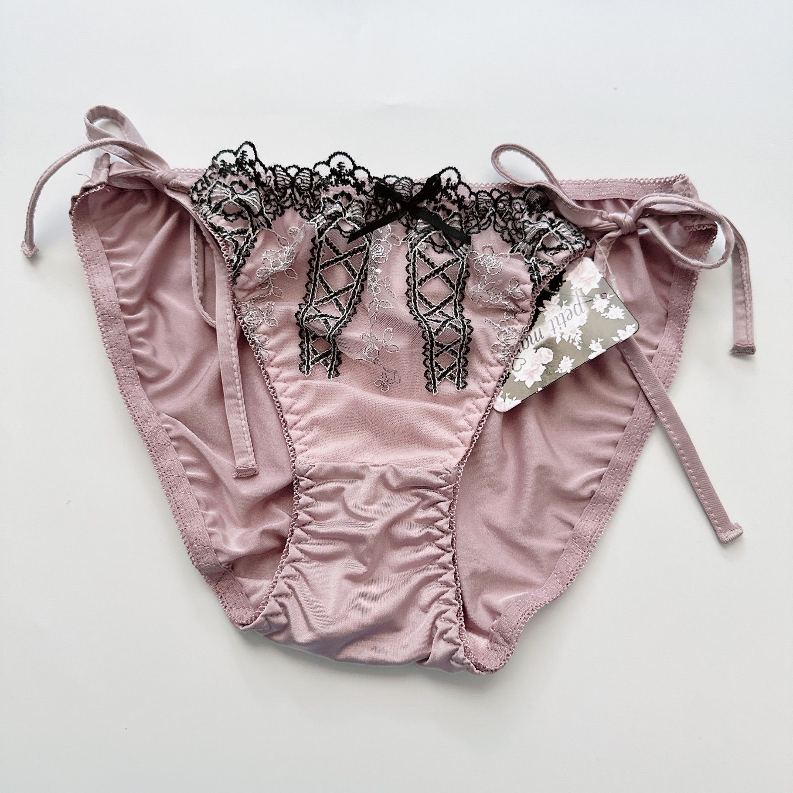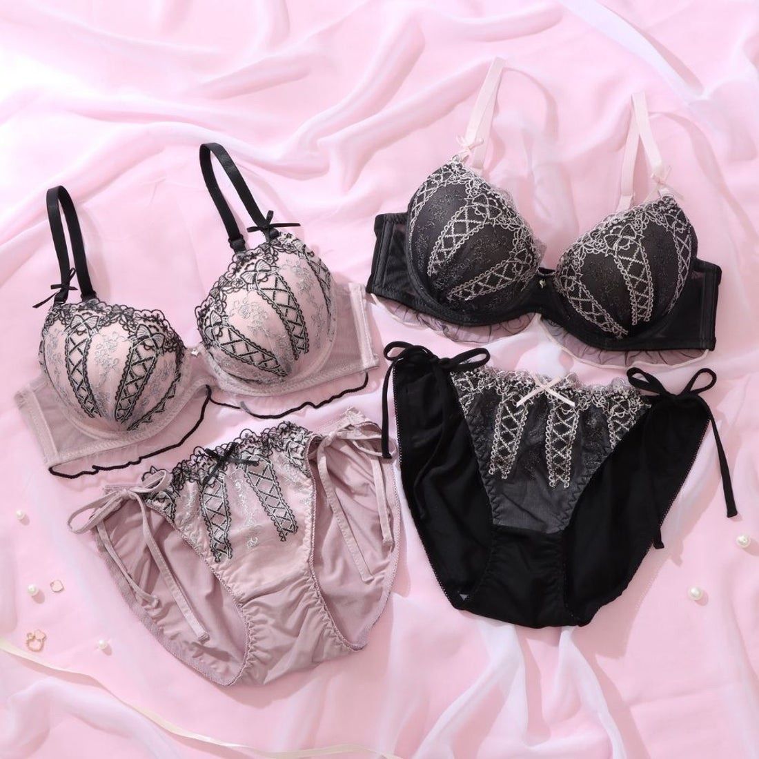 バイカラーリボン刺しゅう ブラジャー&フルバック紐ショーツ