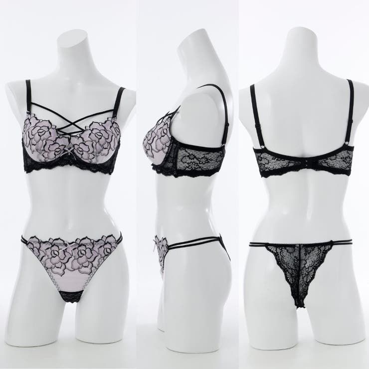 ノワールローズ 脇高ブラ&Tバックひもショーツ
