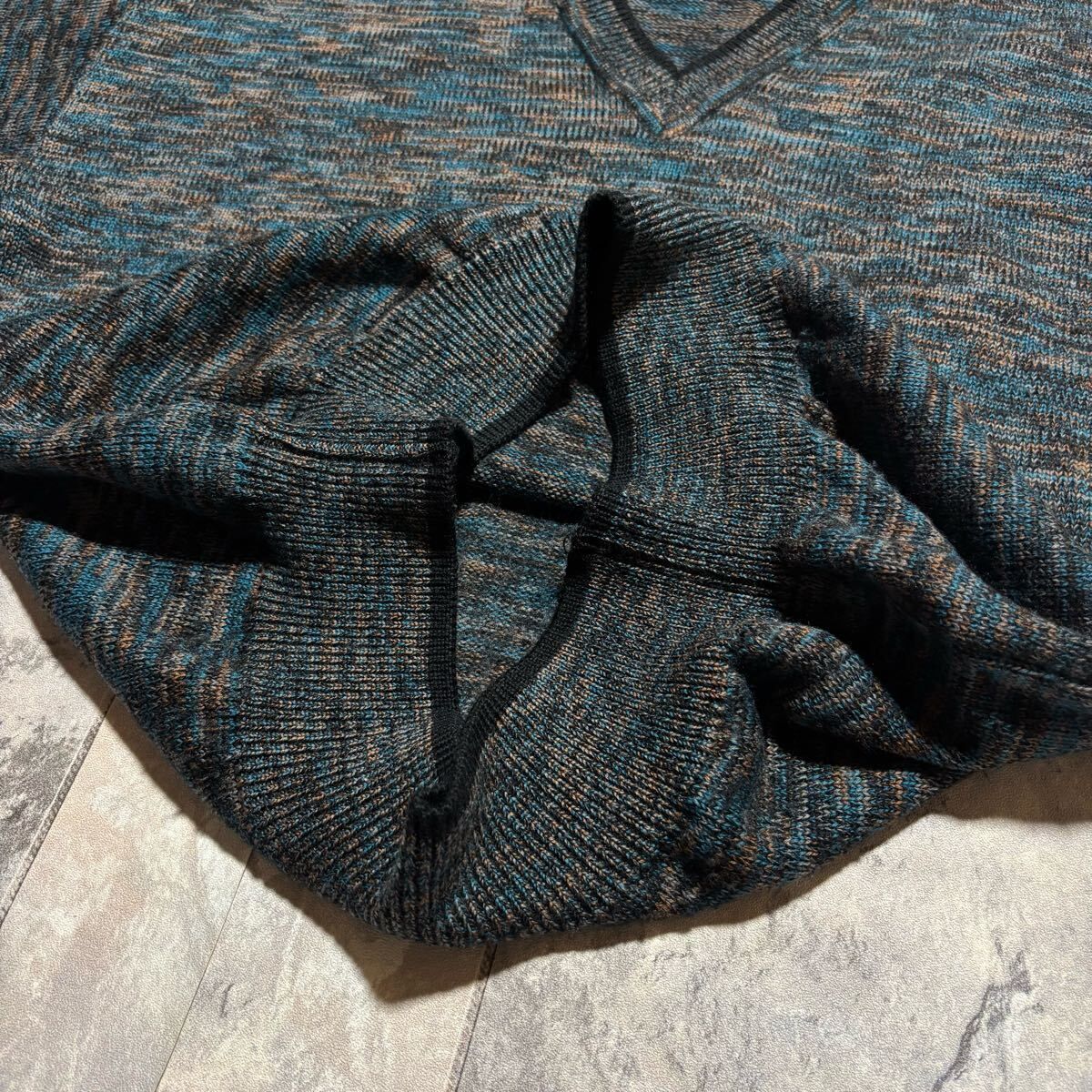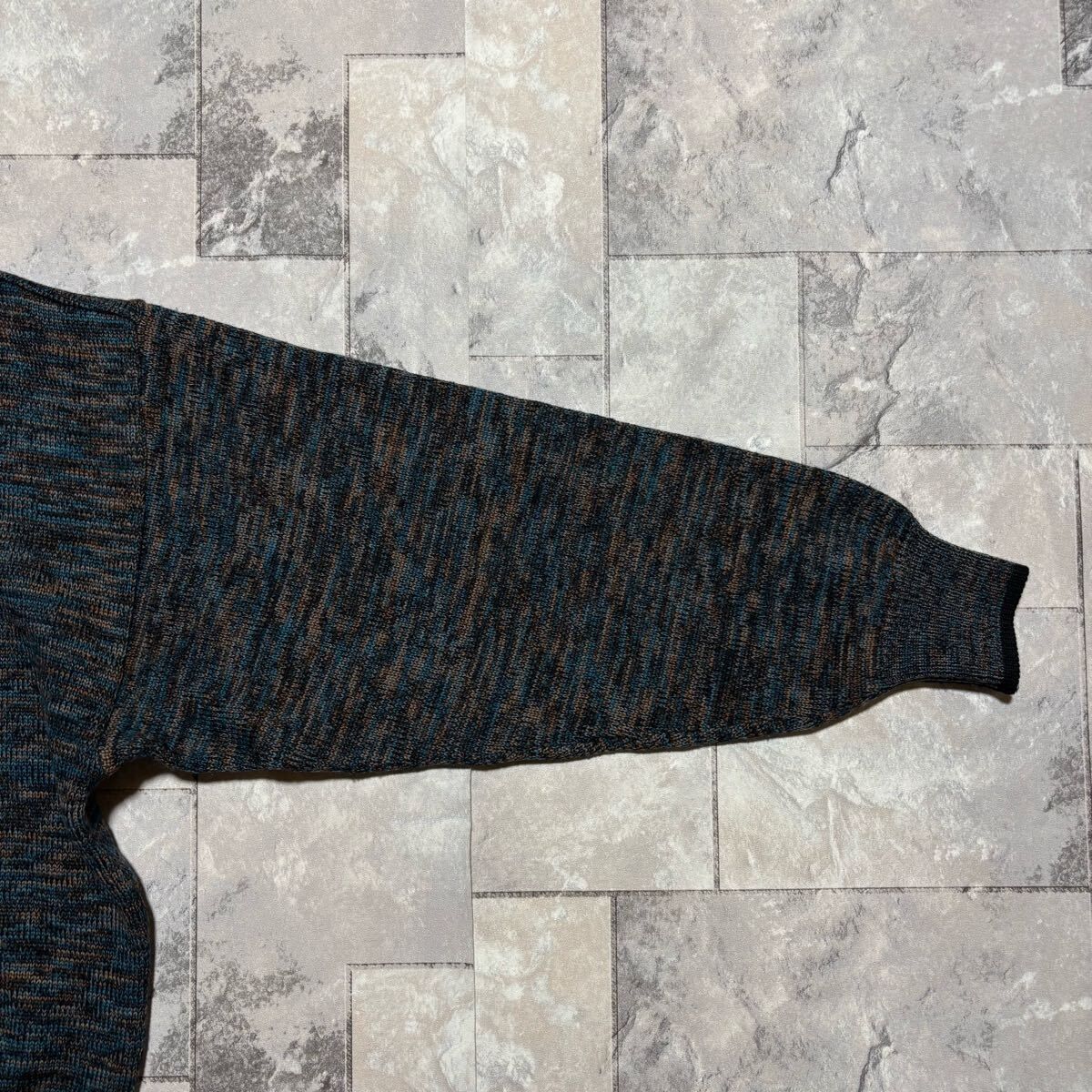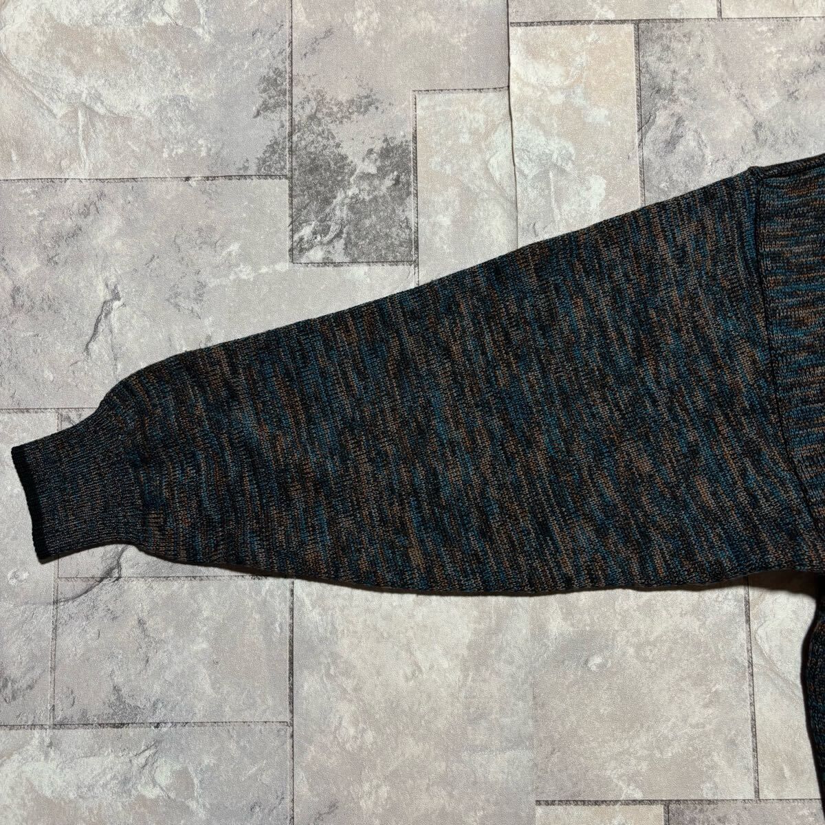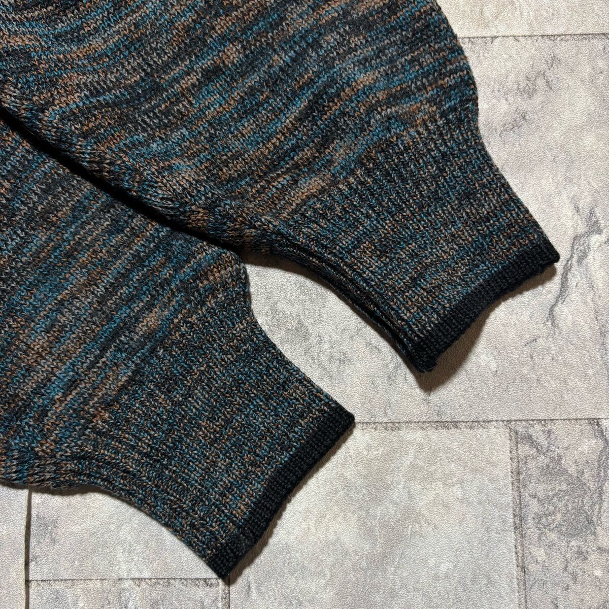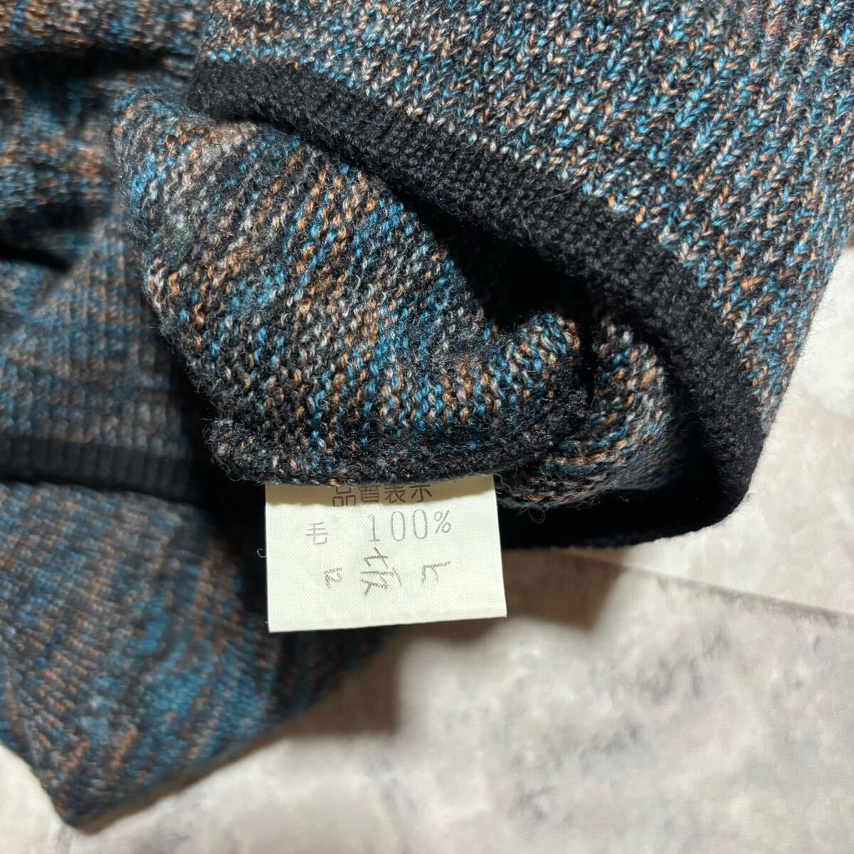 KENZO PARIS ケンゾー ニット セーター Vネック 日本製 総柄 ウール 長袖 ブルー ブラック ブラウン サイズL相当 玉FS1756