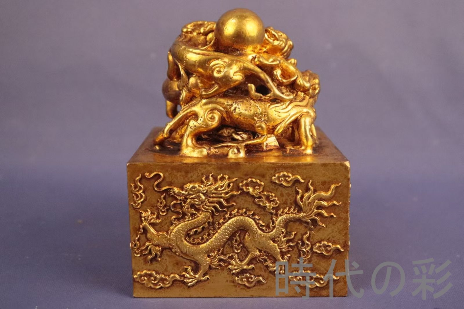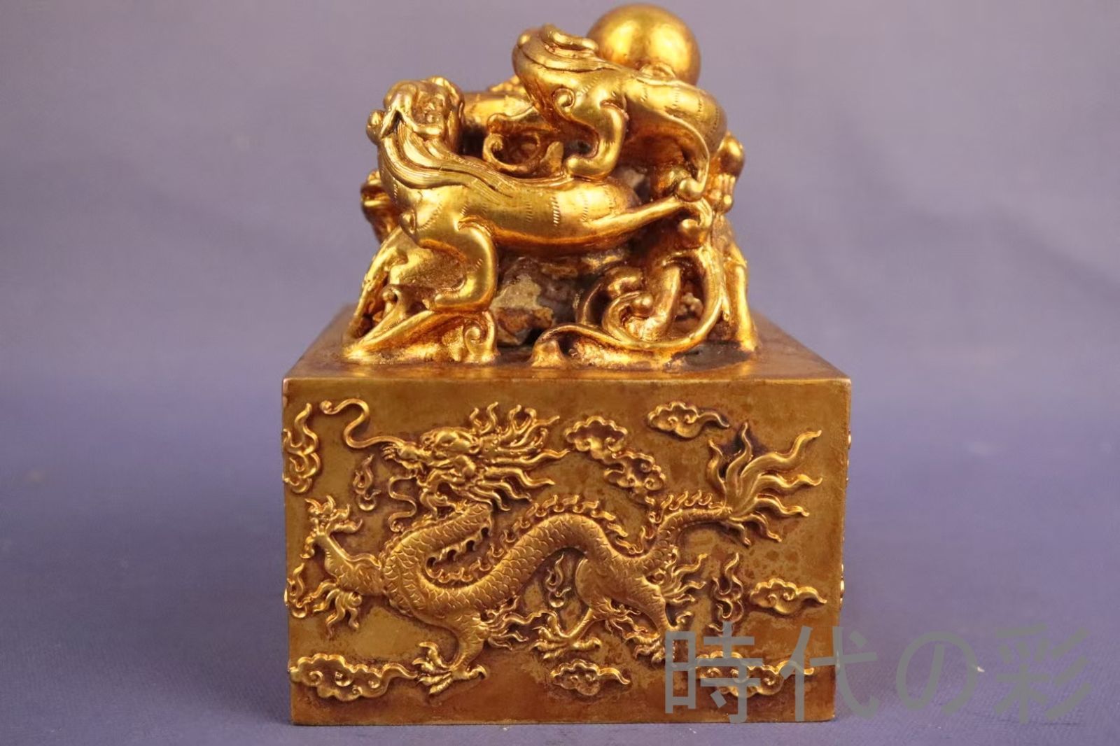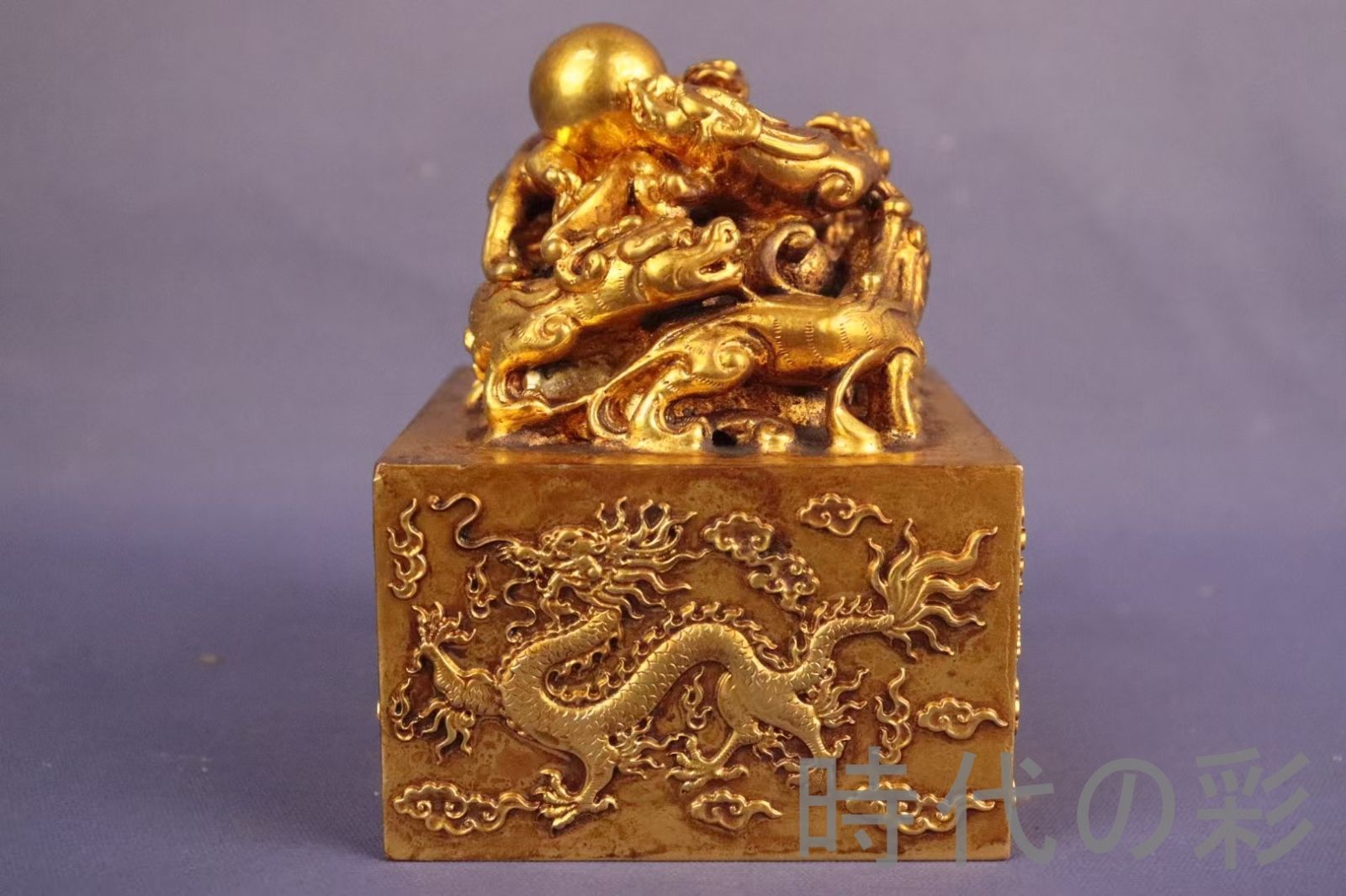 重量級鍍金銅印章。鏨刻が極めて細緻で在銘重器として収蔵価値高い。