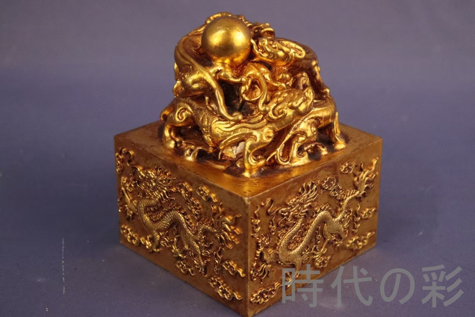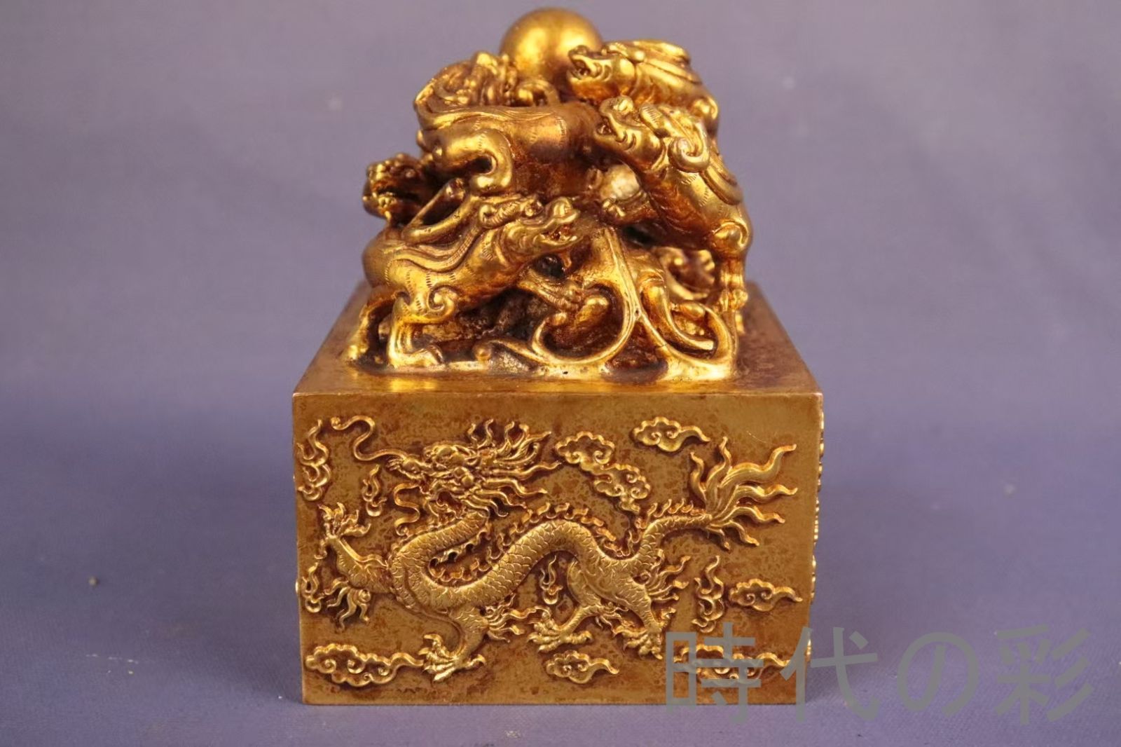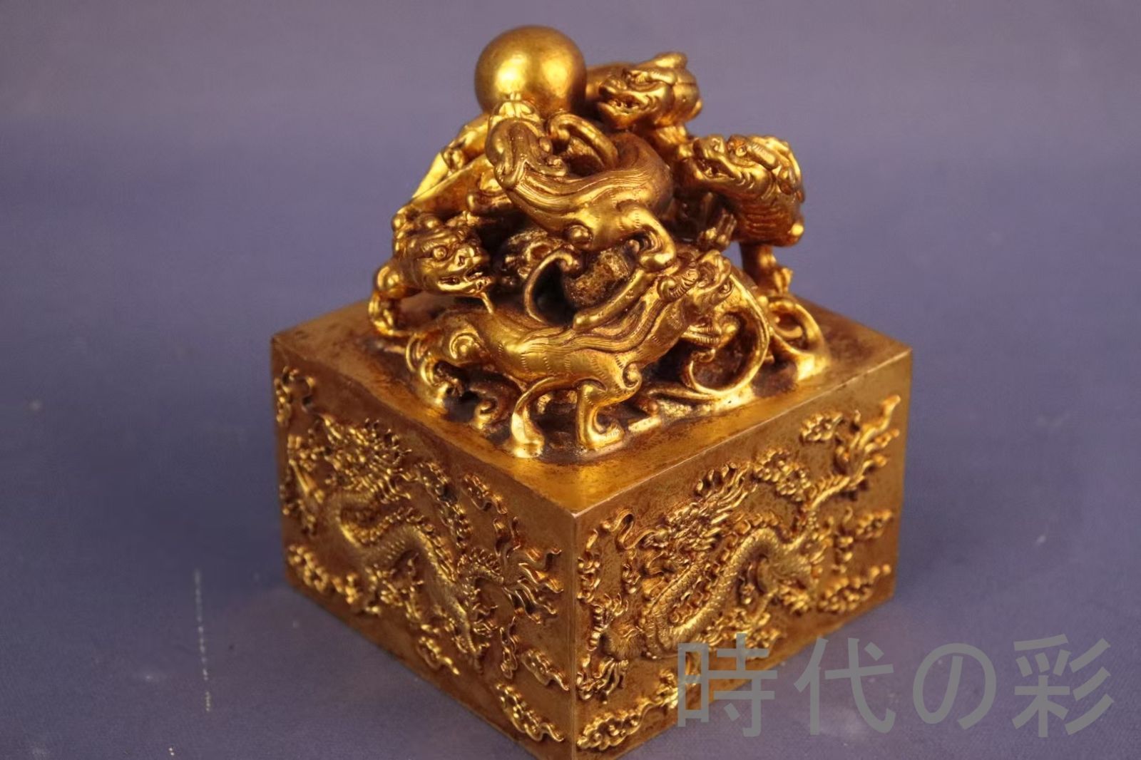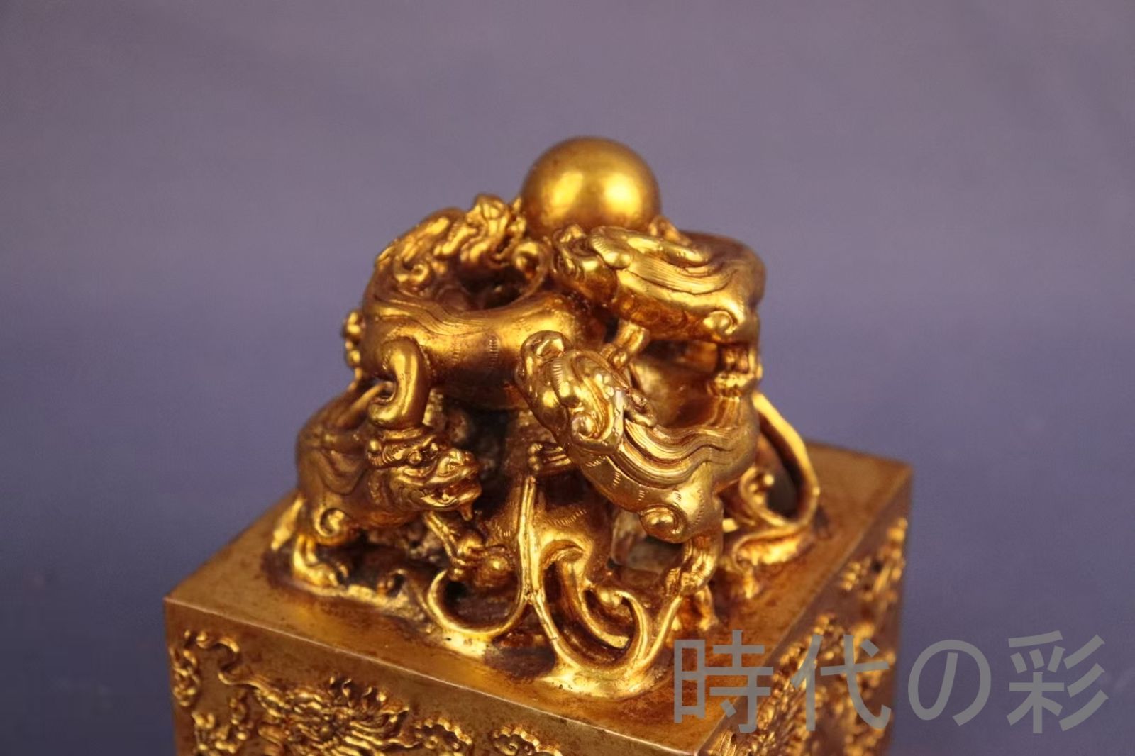 重量級鍍金銅印章。鏨刻が極めて細緻で在銘重器として収蔵価値高い。