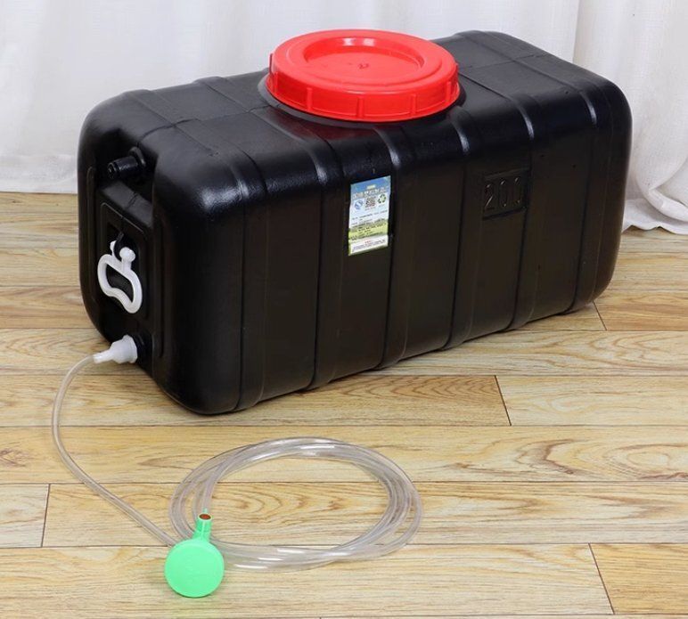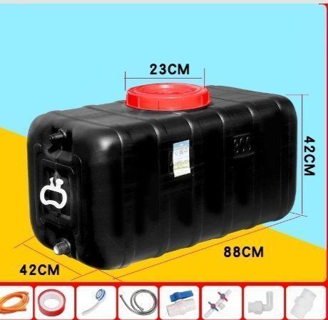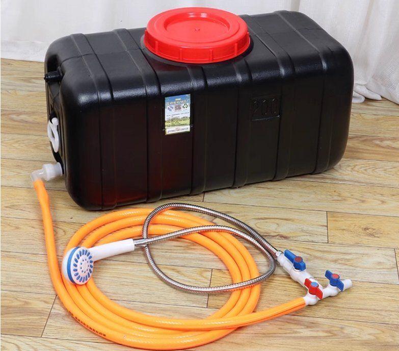 【120L大容量】120Lと2 ~ 3人が入浴したり、1~2日分の水を使うのに十分な大容量です。また、貯水タンクフラットスクエアデザインなので安定性が高く、屋根やキャンピングカーのルーフに置いても落ちにくいです。