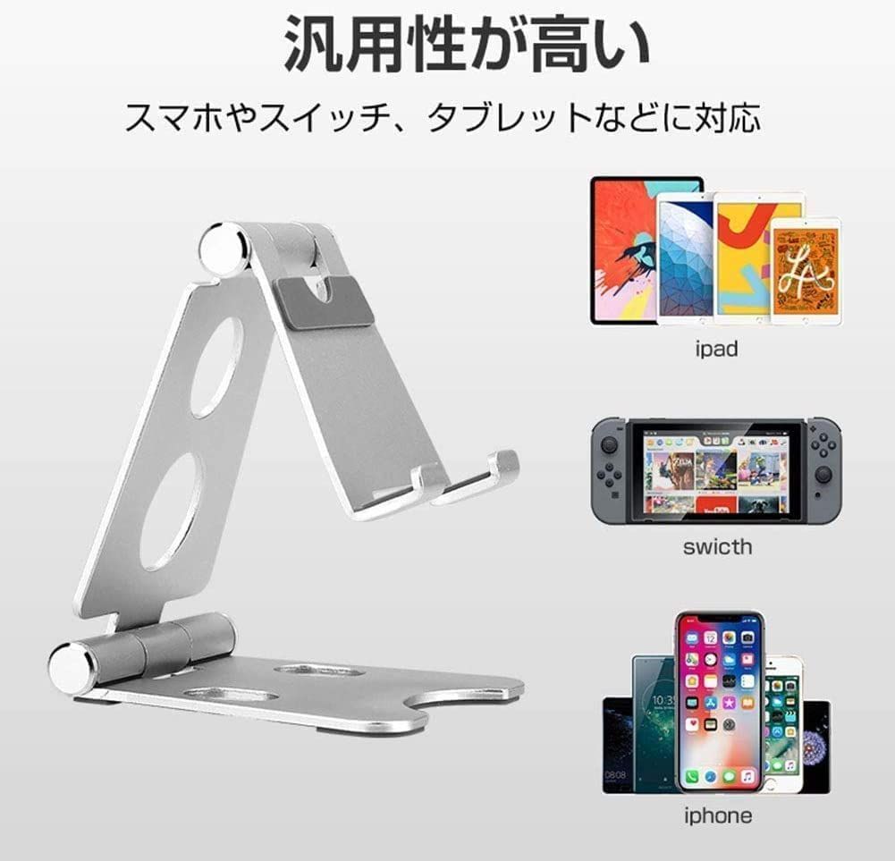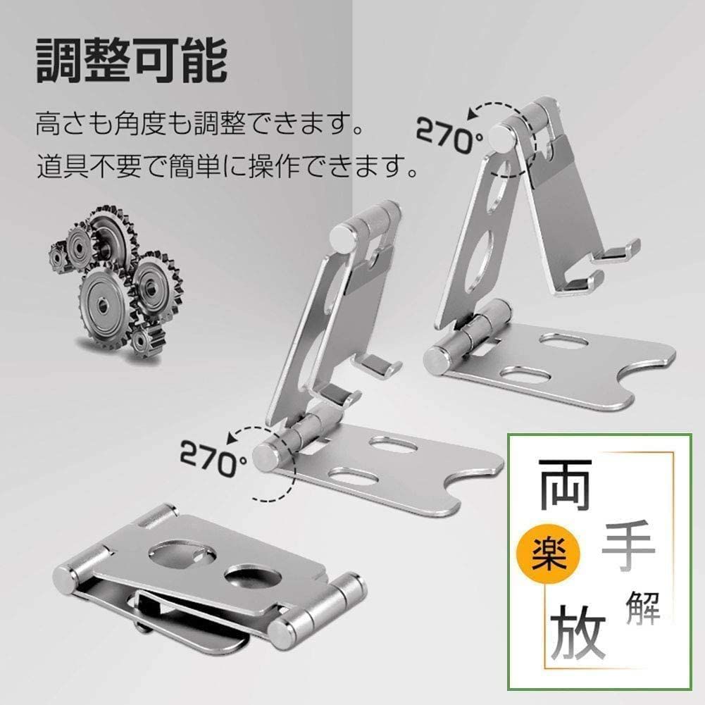 【滑り止めのシリコン】デバイスをしっかり保護するように、スマホスタンドはスマホを載せる爪部分シリコンがついています、スタンドの底部シリコンが付いていて、すべすべな卓面の滑にくいです。スマホ保護と机を滑り防止に役立っています。