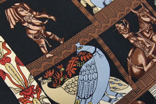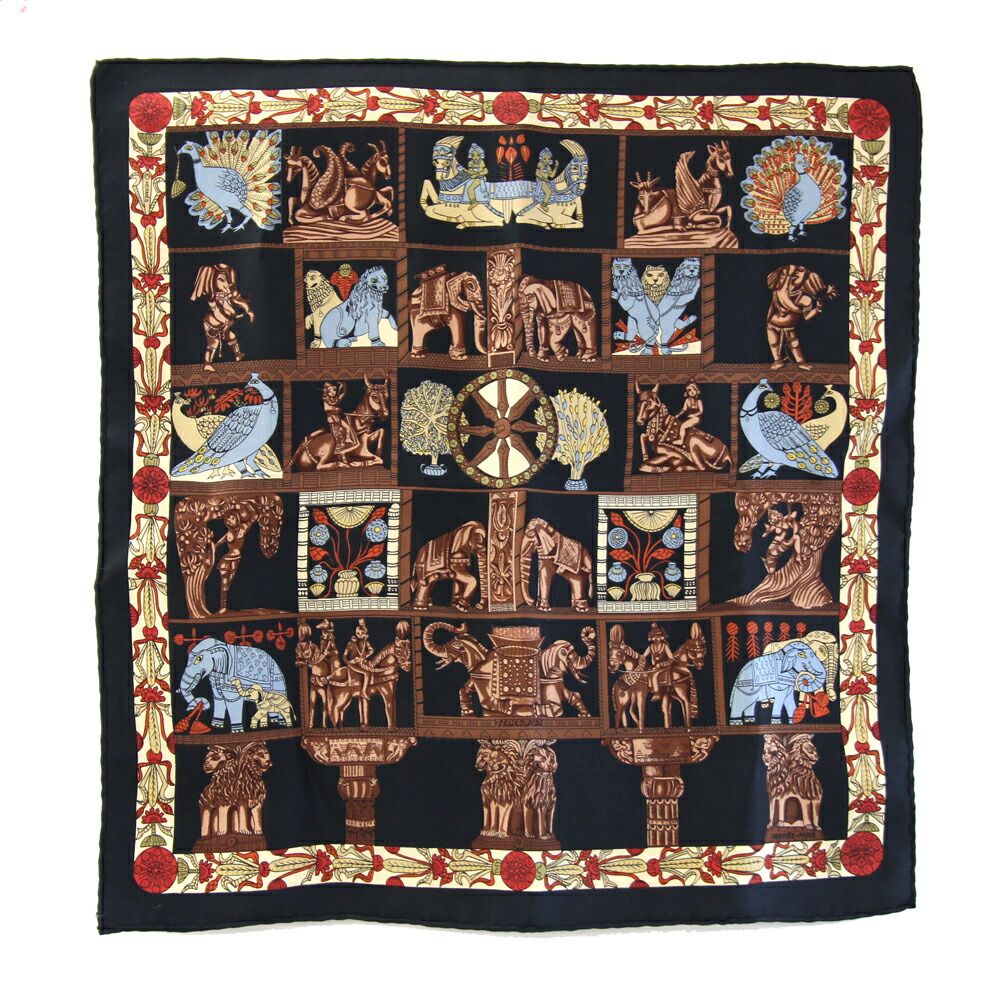 エルメススカーフカレ45TORANA塔門ブラックシルク100%中古プチカレミニストール正方形ファッションレディースHERMES