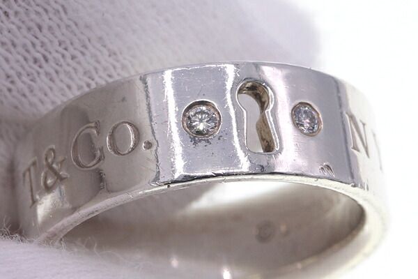 ティファニーリングロックリング2PダイヤSVスターリングシルバー925US5.5-6/7.5号中古指輪アクセサリージュエリーレディースTIFFANY&CO