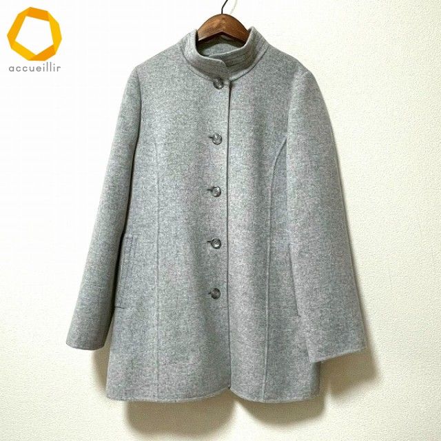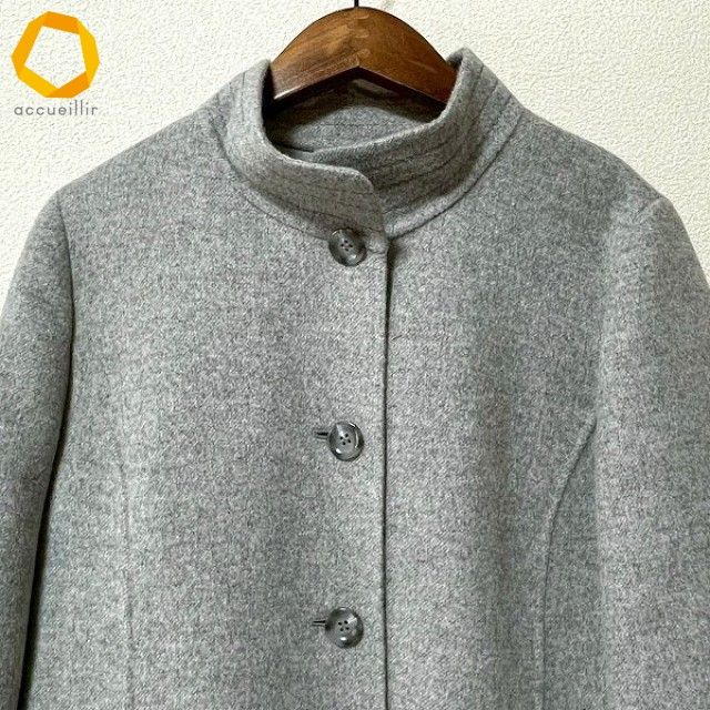 ◎商品名(タイトル):#wnc レリアン Leilian コート 9 グレー ハーフ スタンドカラー アンゴラ混 ステッチ レディース [976009]