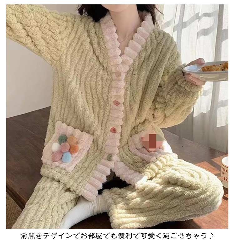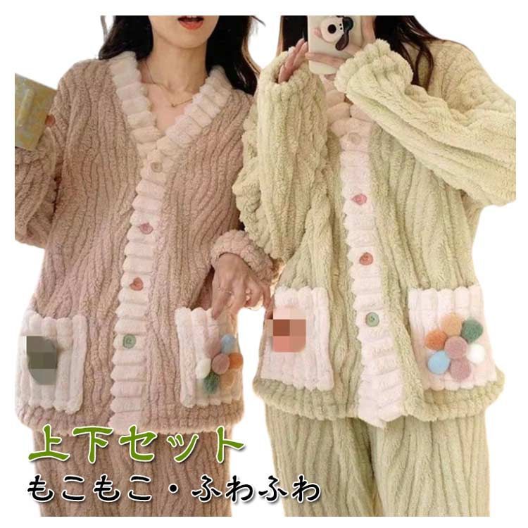ルームウェア もこもこ セットアップ 部屋着 上下セット レディース 秋 冬 パジャマ フリース 寝間着 暖かい あったか 長袖 ロングパンツ 可愛い ふわふわ リラックスウェア プレゼント ギフト #pop2650
