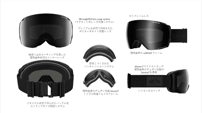 植物由来のTPUフレームと、100%リサイクル素材のレンズリムを採用し、環境にも配慮した設計です。DK interLOCKレンズスワップシステム により、コンディションに応じたレンズ交換をスムーズに行うことが可能。