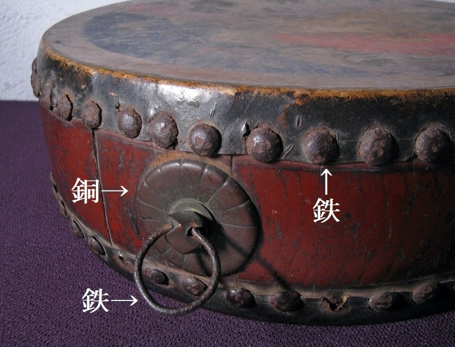 金具は鉄と胴 (画像矢印参照) 木枠に紙張