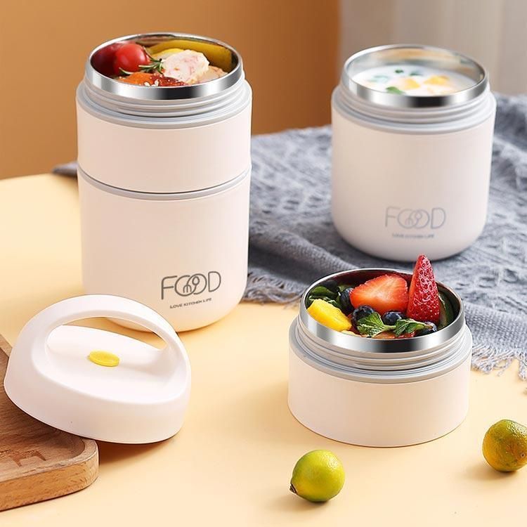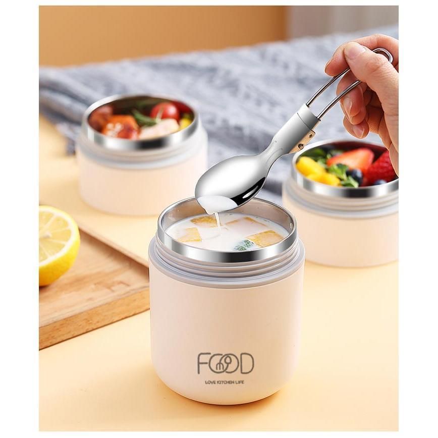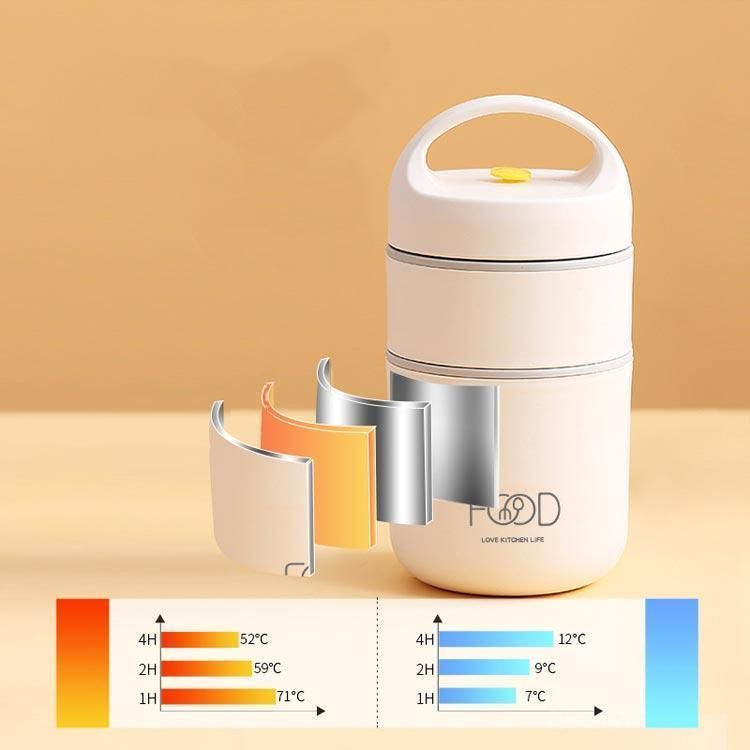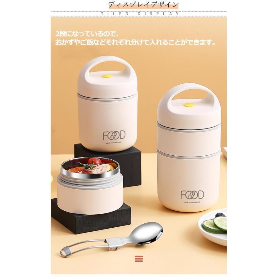 ランチボックス 保温ランチジャー 弁当箱 680ml 折りたたみスプーン付き お弁当箱 ランチジャー ステンレス 2段 軽量 入園入学 保温ランチボ