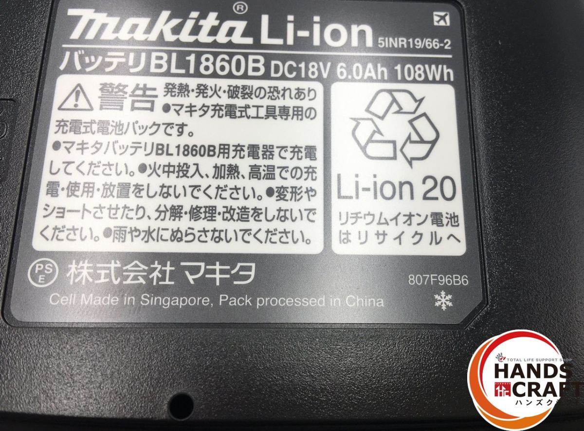 諸元 DC18V / 6.0Ah / 108Wh