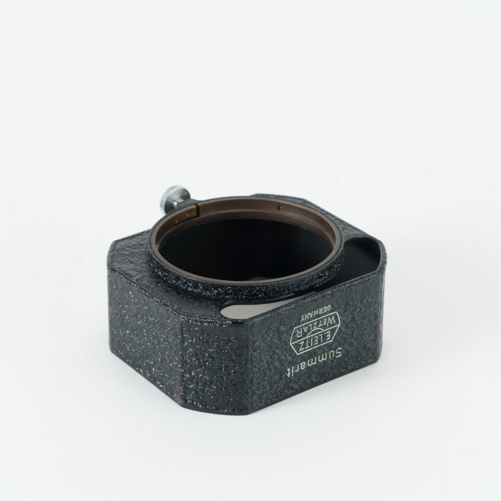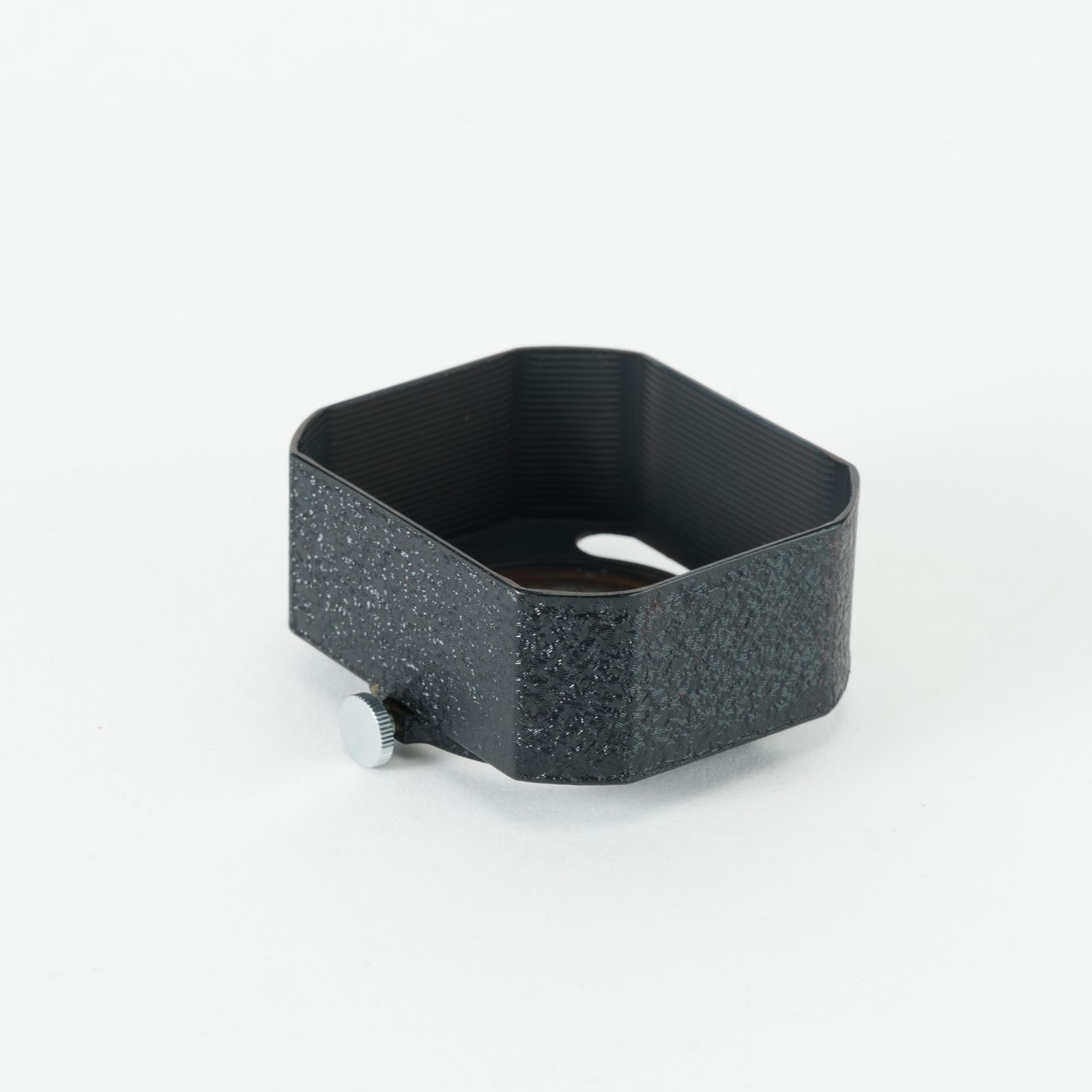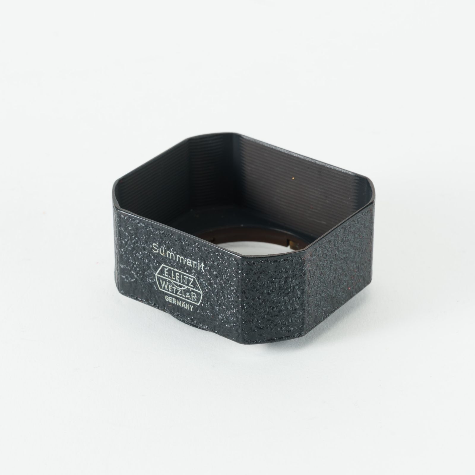 1951年発売。高級感のある表面加工やレンジファインダーの覗き窓を塞がない穴あき構造など、Summarit専用品として作られた専用フードです。上品なSummaritに角ばった無骨なデザインのコントラストがカッコ良いデザイン。四角いフードをつけるとこれぞビンテージカメラという気分になりますよね。
