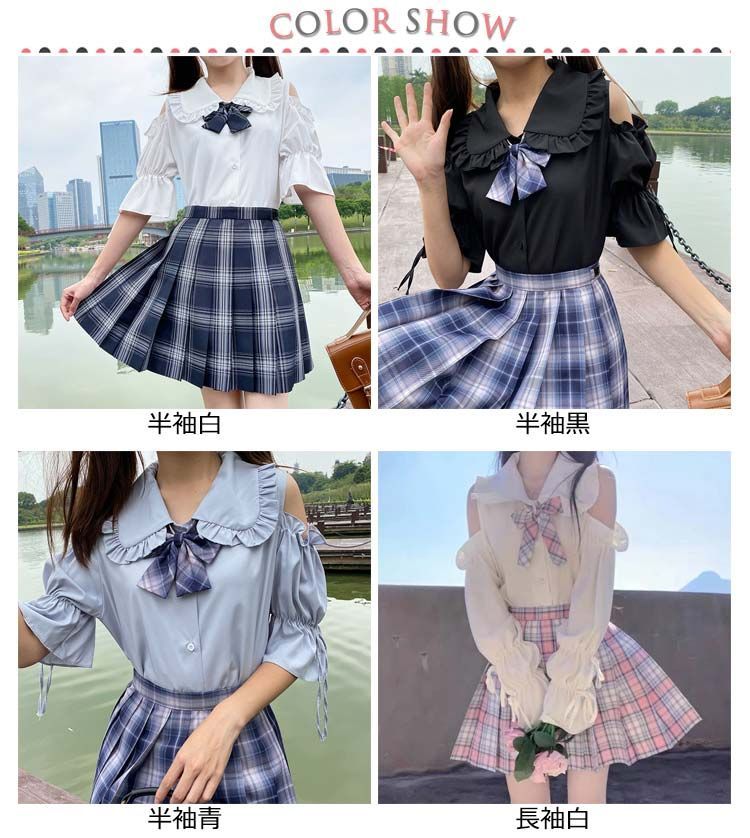 色:半袖白 半袖黒 半袖青 長袖白 長袖黒 長袖青