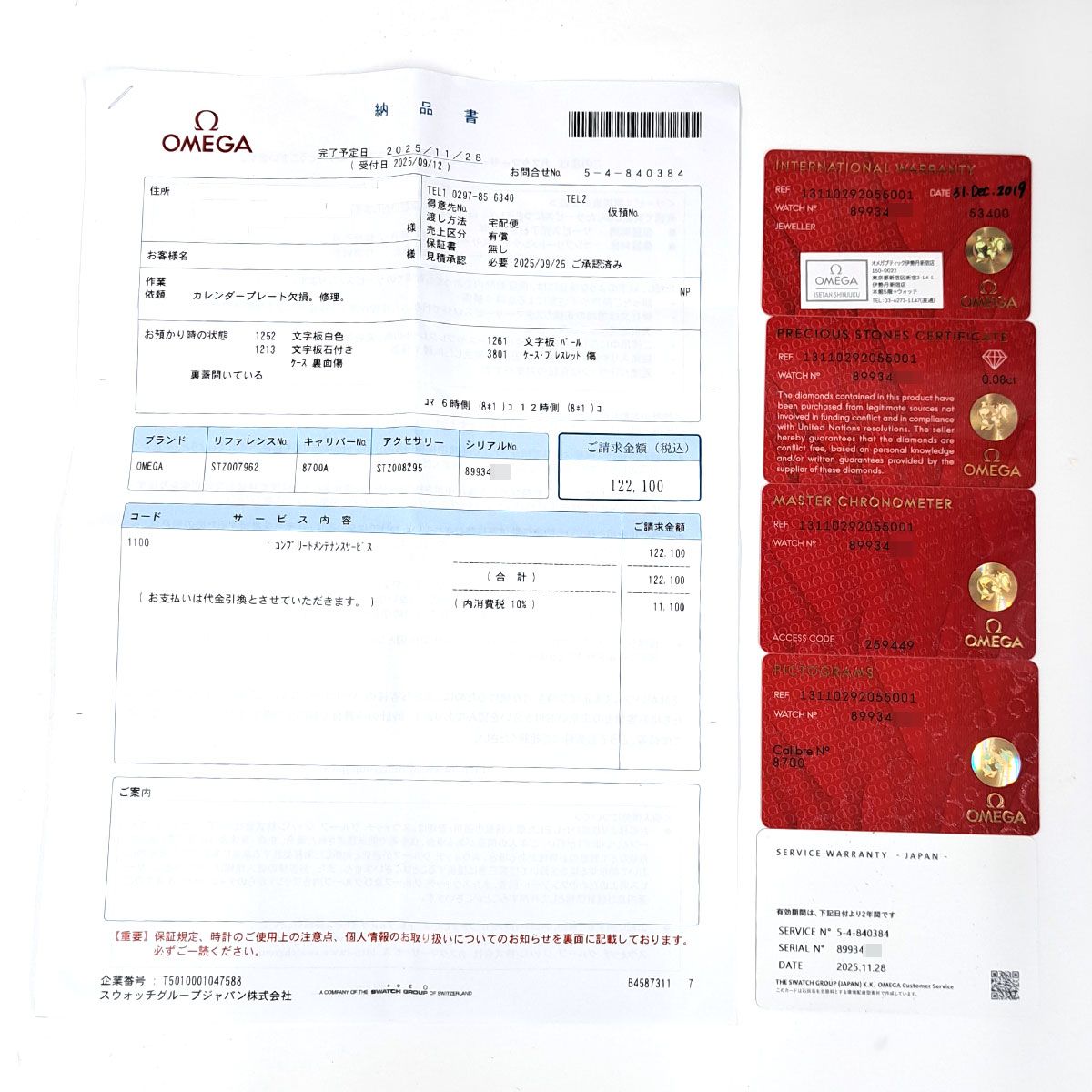 [付属品] ギャランティ ピクトグラム クロノメーター証 宝石証明書 修理明細(2025.11) サービスギャランティ