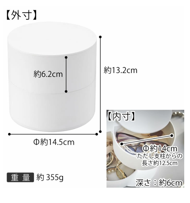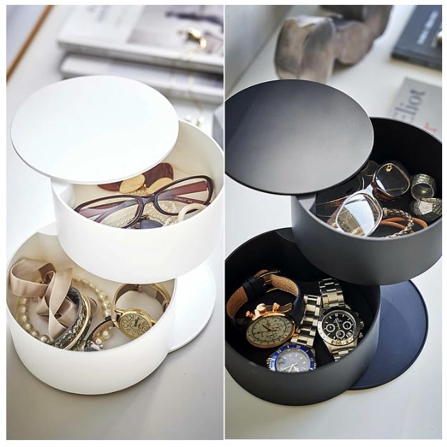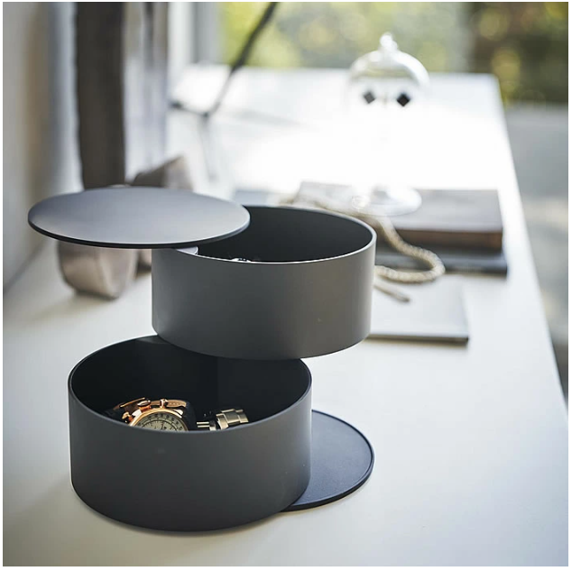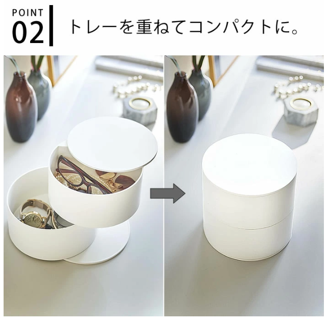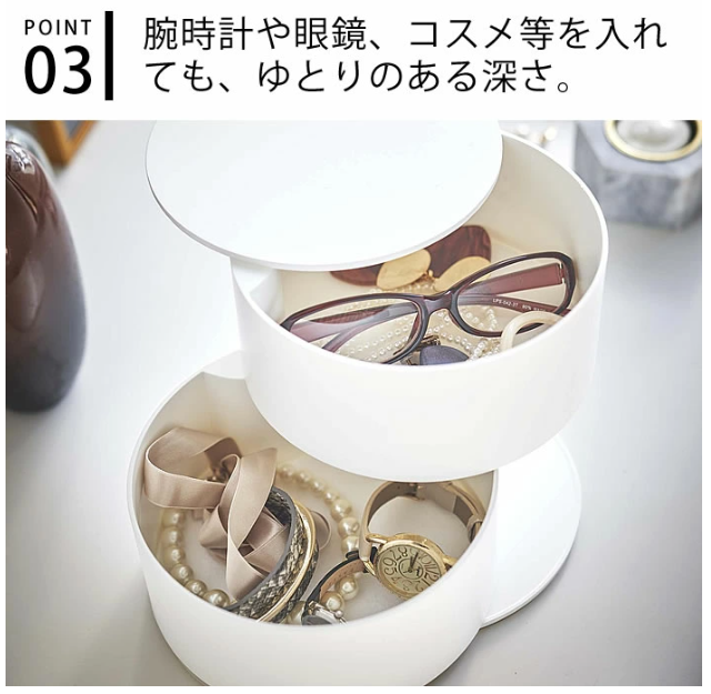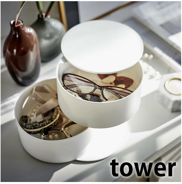 アクセサリートレー タワー 深型 tower トレイ 2段 収納 蓋付き 回転式 スライド式 ジュエリーケース ジュエリートレー ピアス 指輪 時計 シンプル 白 黒 ホワイト ブラック タワーシリーズ 5708 5709 山崎実業 yamazaki ヤマジツ ディスプレイ コスメ 収納 小物入れ ジュエリーボックス アクセサリー 収納 アクセサリーケース YAMAZAKI