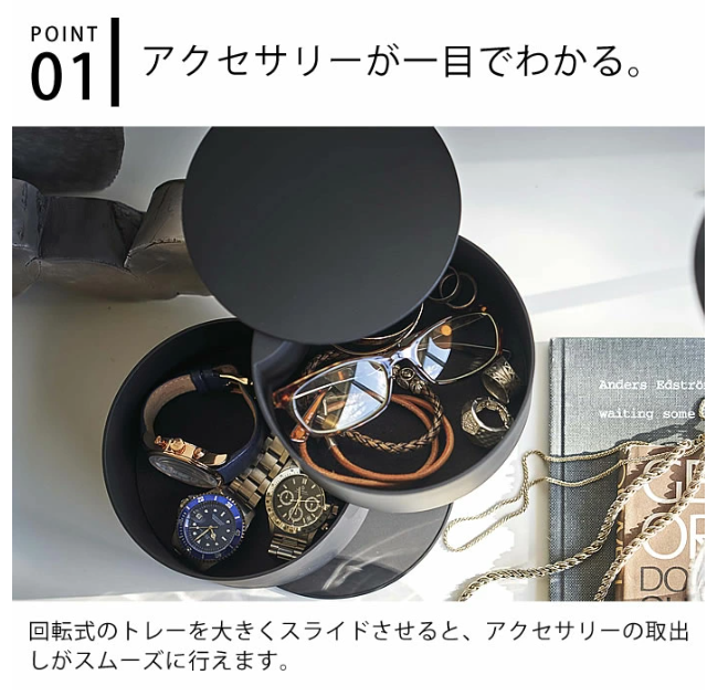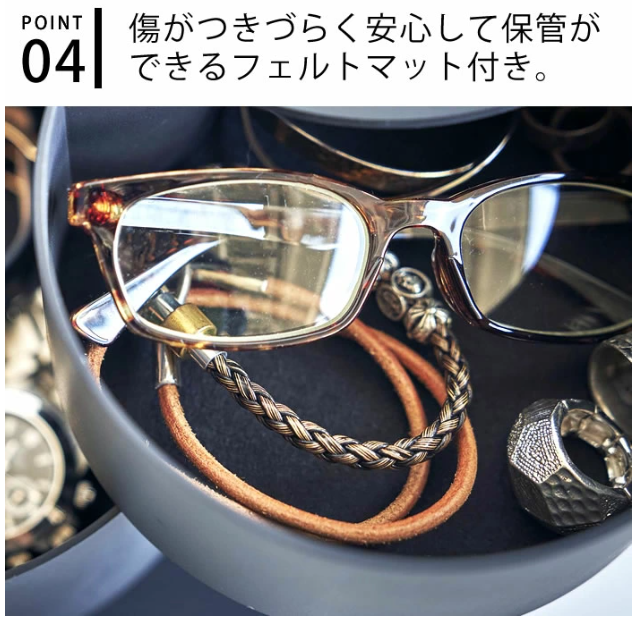 回転式で使いやすくアクセサリーを傷つけないフェルトマット付。