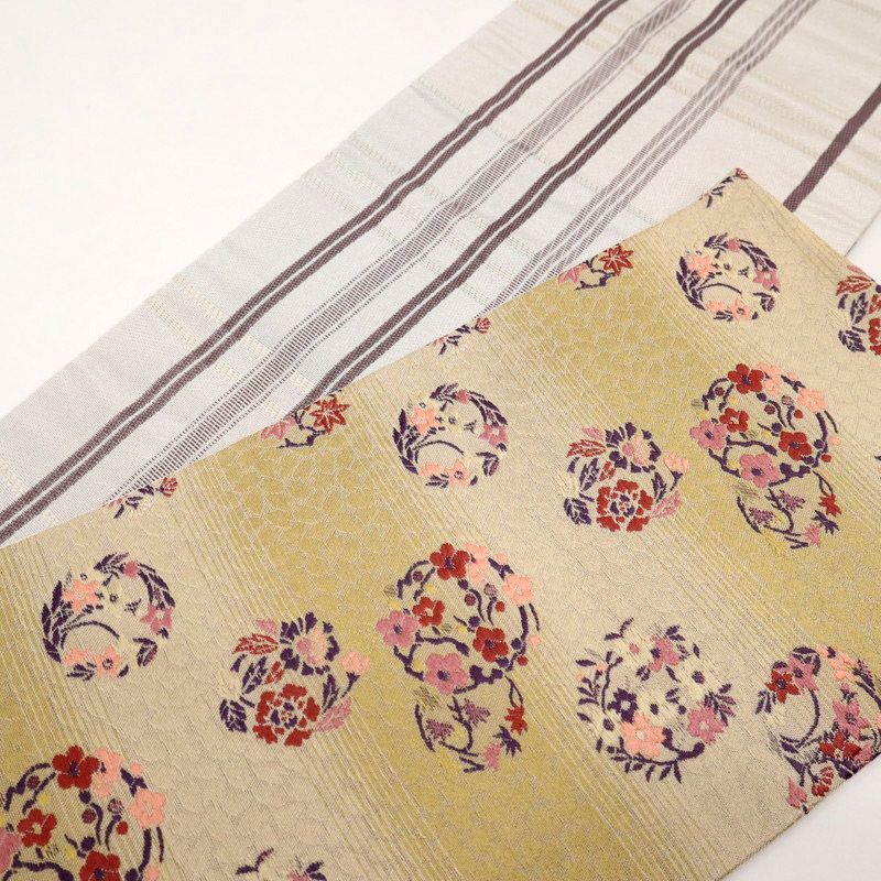 ほんのりと浮かぶベージュに霞ぼかしの帯地。