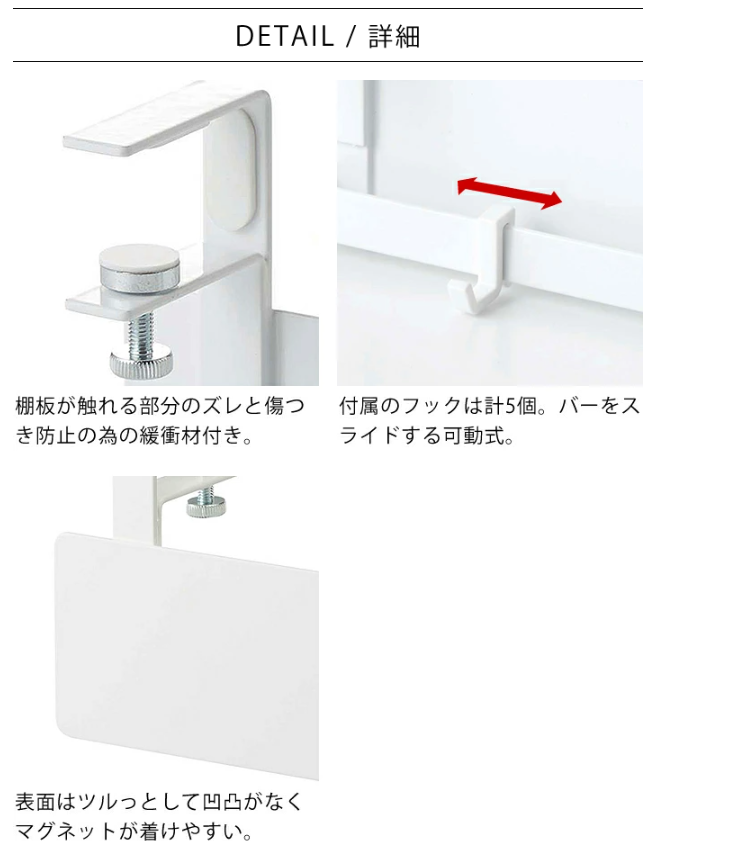 ・全体の耐荷重を超えてのご使用は破損や事故の原因となる場合もございますのでおやめ下さい。