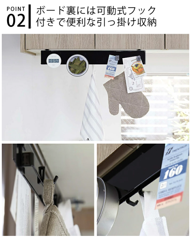 裏には吊り下げ収納もできるフック付き。戸棚下の有効活用!