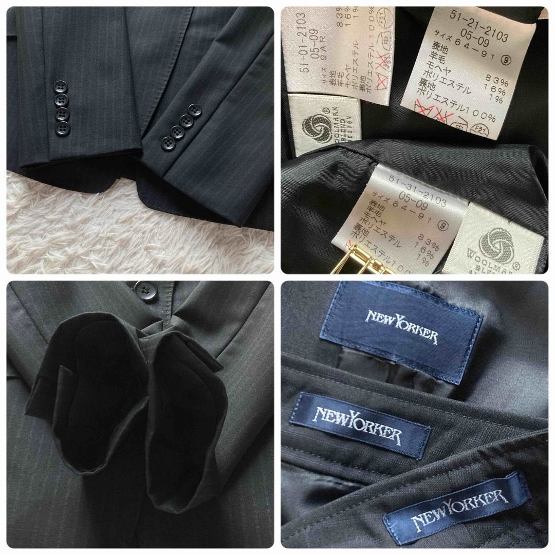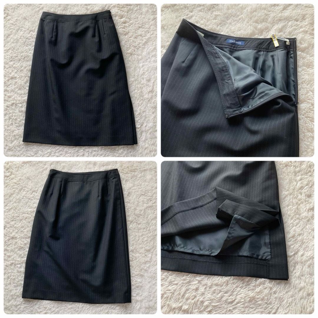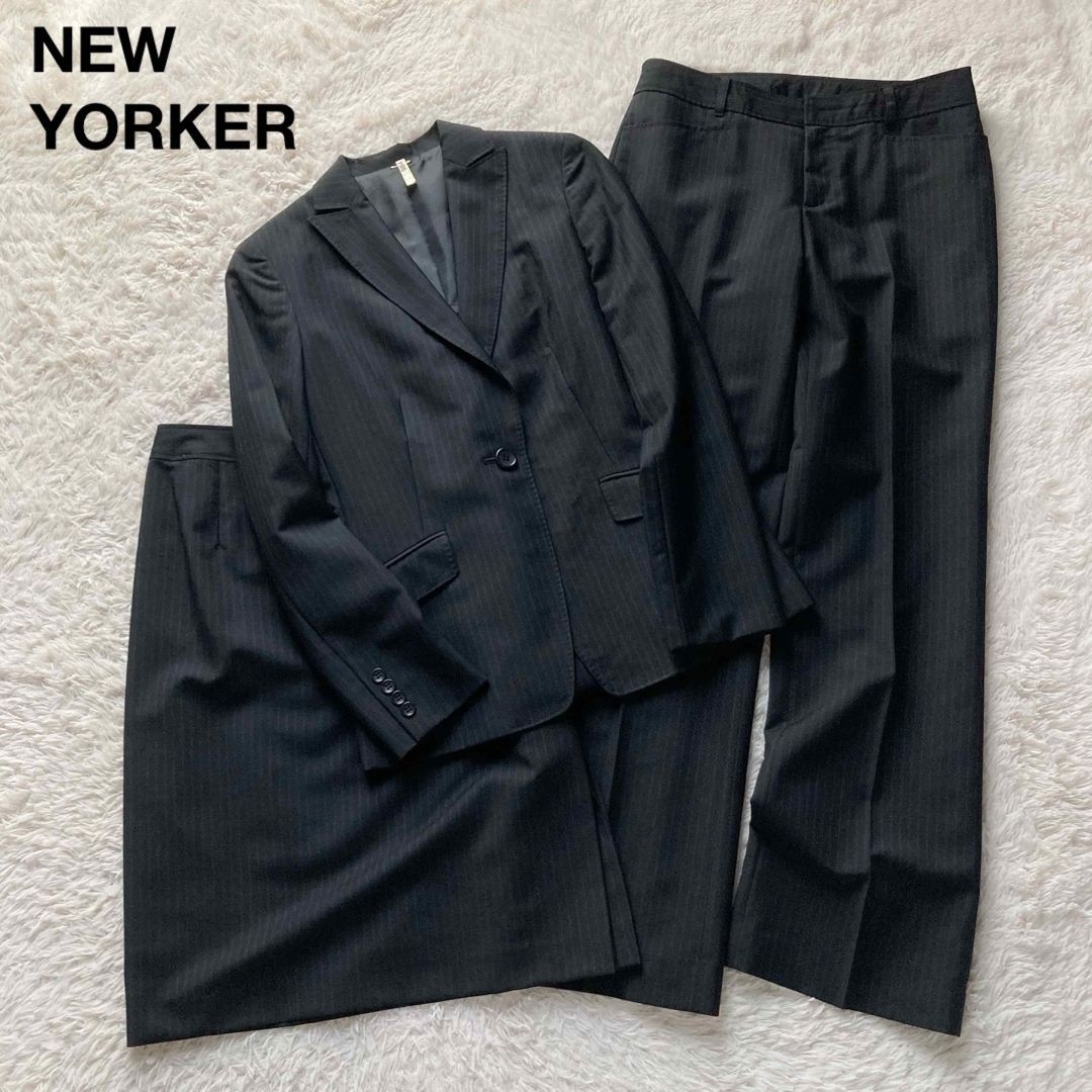 ニューヨーカー NEW YORKER セットアップスーツ 上下セット 3点セット テーラードジャケット ひざ丈スカート スラックス ストライプ 羊毛モヘヤ